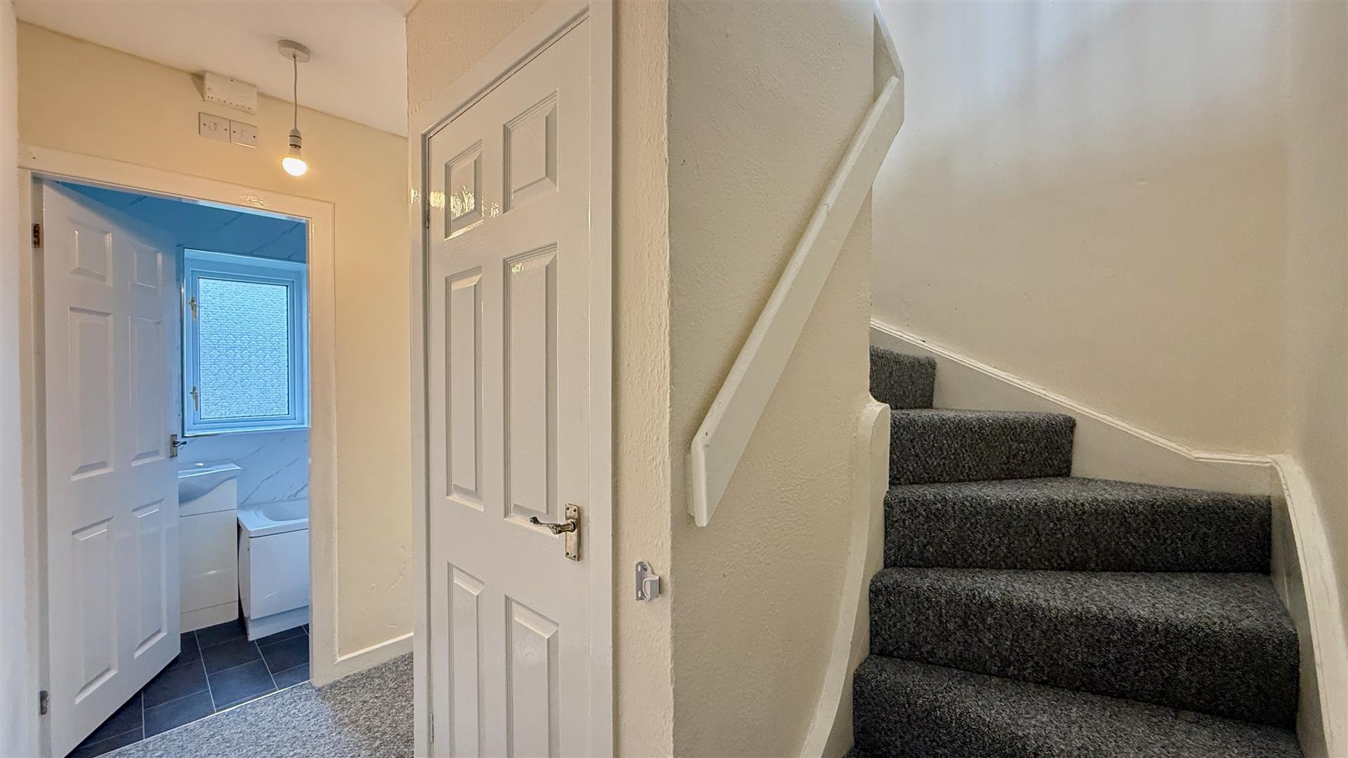 The private entrance hall is on the first floor with doors to the two bedrooms and bathroom, stairs to lounge and kitchen and door to cupboard.