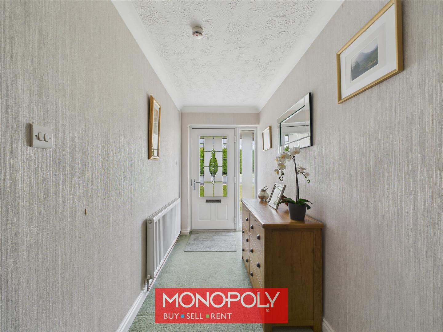The hallway is fully carpeted and provides access to all bedrooms and the garage, with the added convenience of an airing cupboard for additional storage.