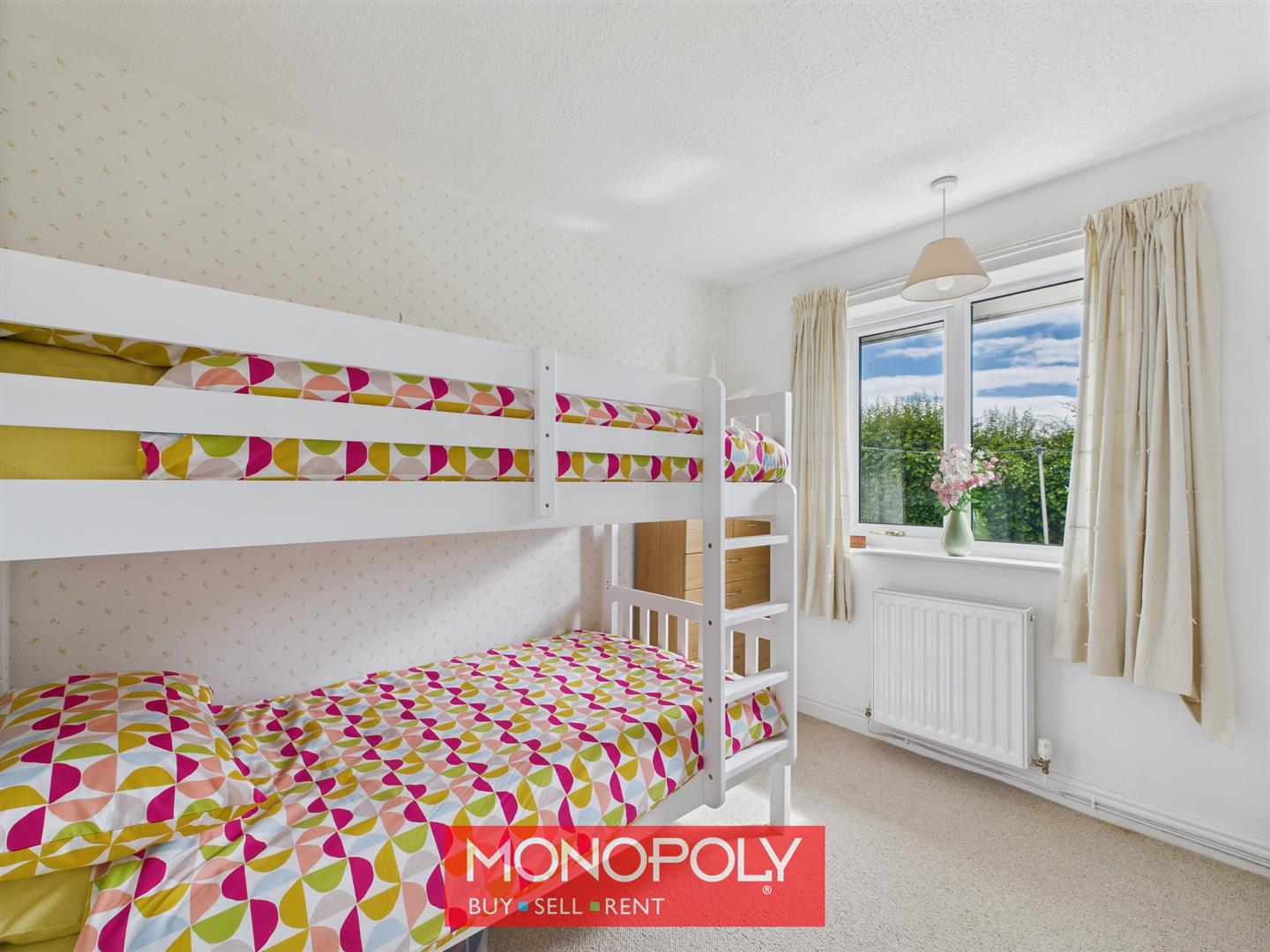 This single bedroom is carpeted throughout and features a radiator and a window overlooking the garden, providing a peaceful and comfortable setting.