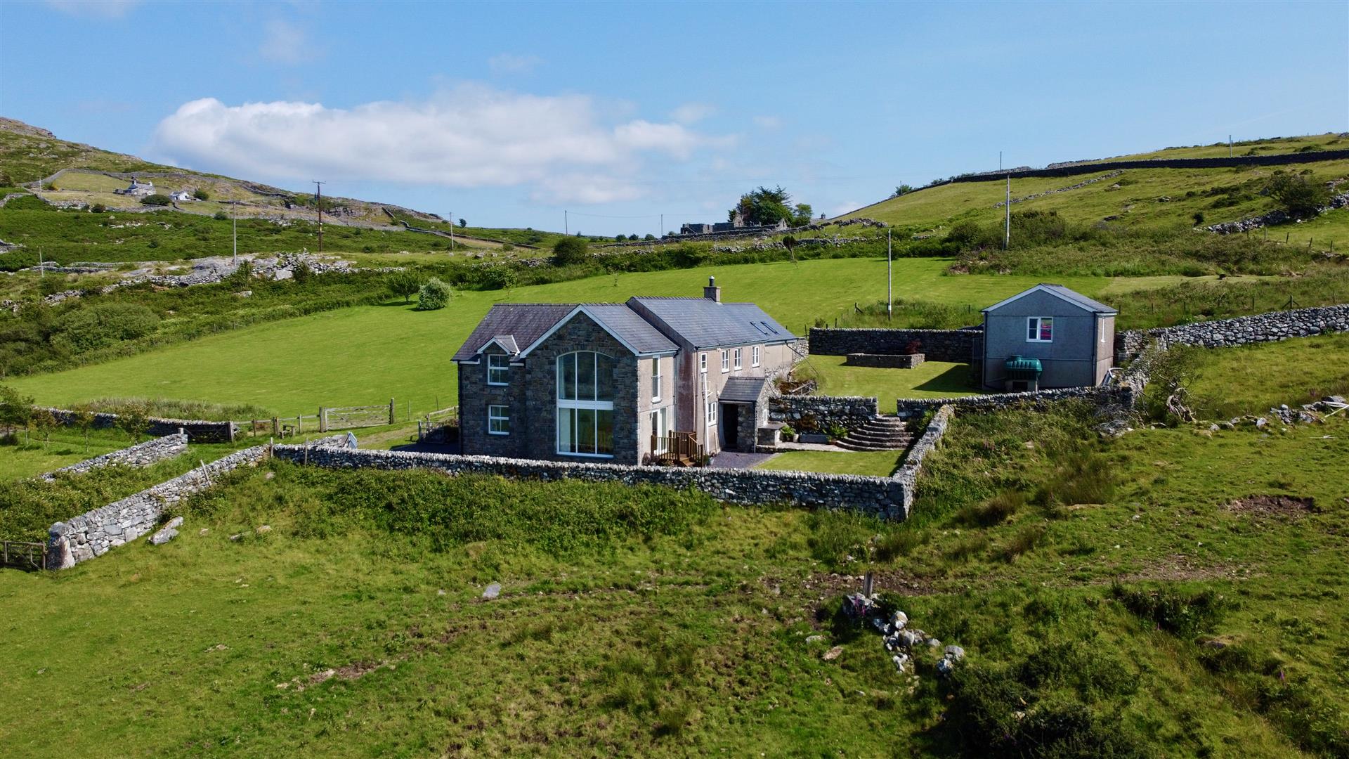 Originally a farmhouse, now extensively renovated and extended, the original character abounds with inglenook fireplace, beamed ceiling and exposed thick stone walling. The modern conversion and extension harmoniously complements with stylish full-height glazing to two floors maximising the astonishing views. The spacious layout includes a high-end kitchen/diner, 2 reception rooms, a utility boot room, and 4 luxurious bedrooms, one boasting an en-suite & Juliet balcony and one with dressing room.