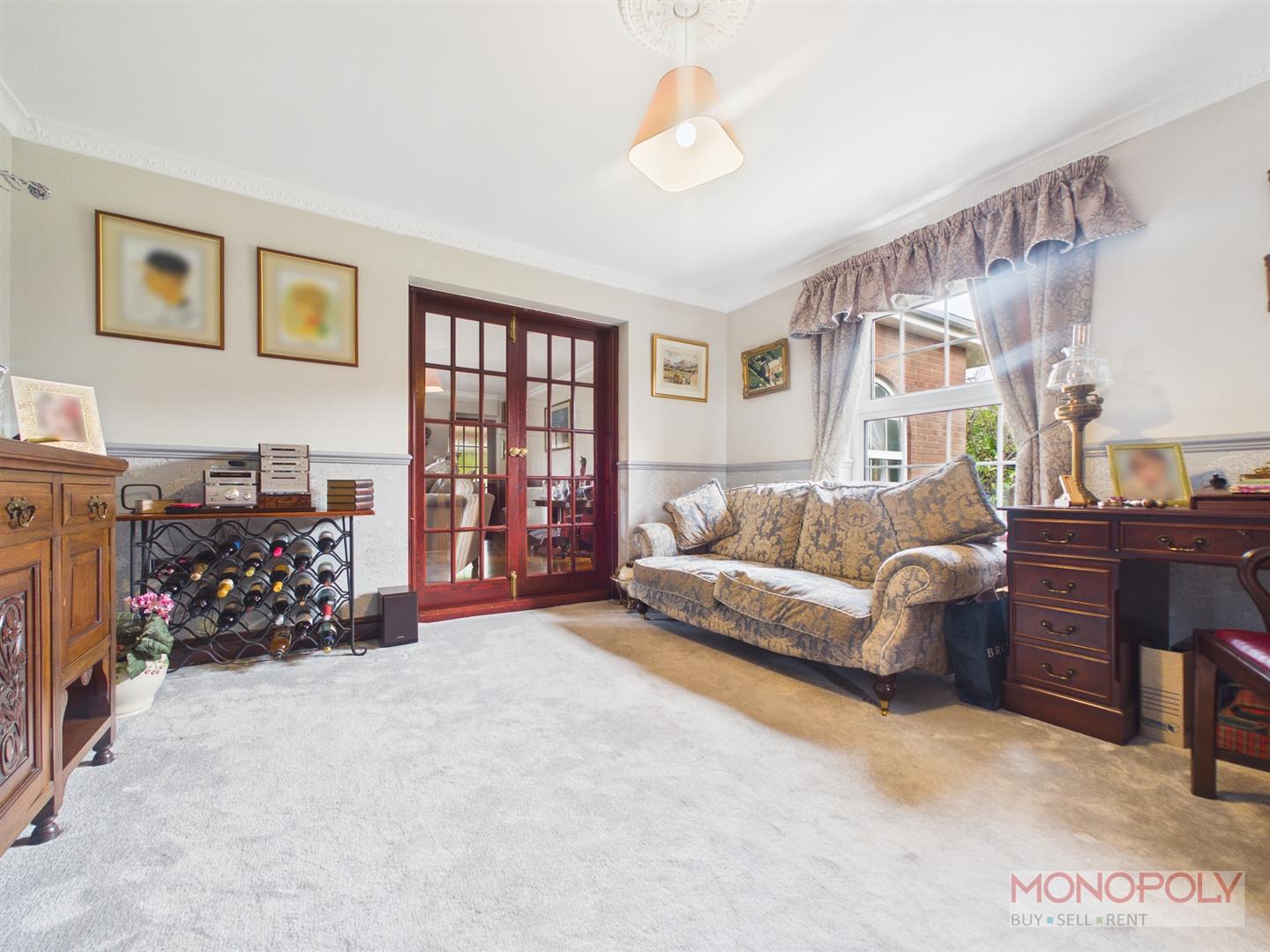 Hardwood doors lead into an additional versatile reception room uPVC double glazed window to side elevation. Serving hatch into kitchen, carpet flooring, ceiling light point, panelled radiator and wooden glazed French doors into the Music Room.