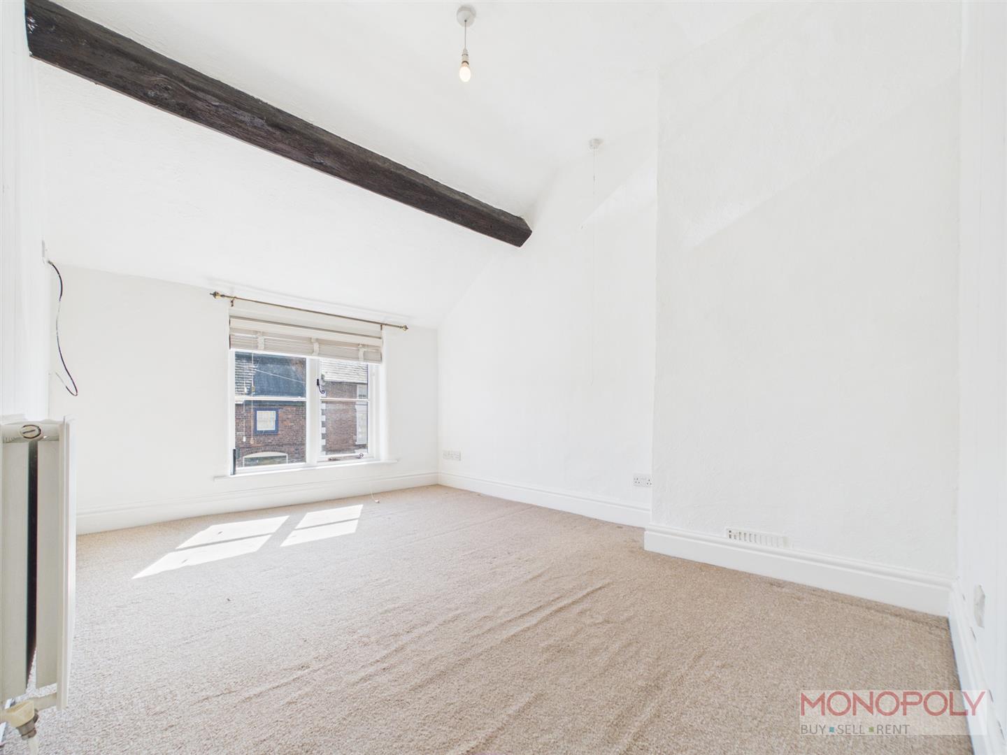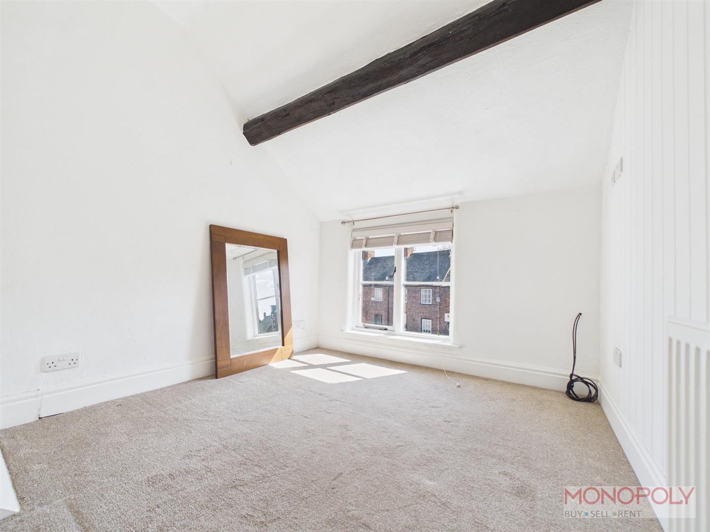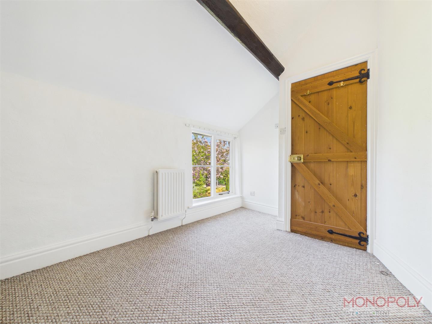 Wooden double glazed window to the front elevation, carpet flooring, ceiling light point, panelled radiator and beamed ceiling.