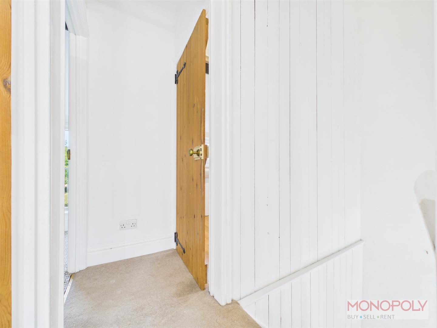 Access to loft, carpet flooring, ceiling light point, doors to three bedrooms and bathroom.