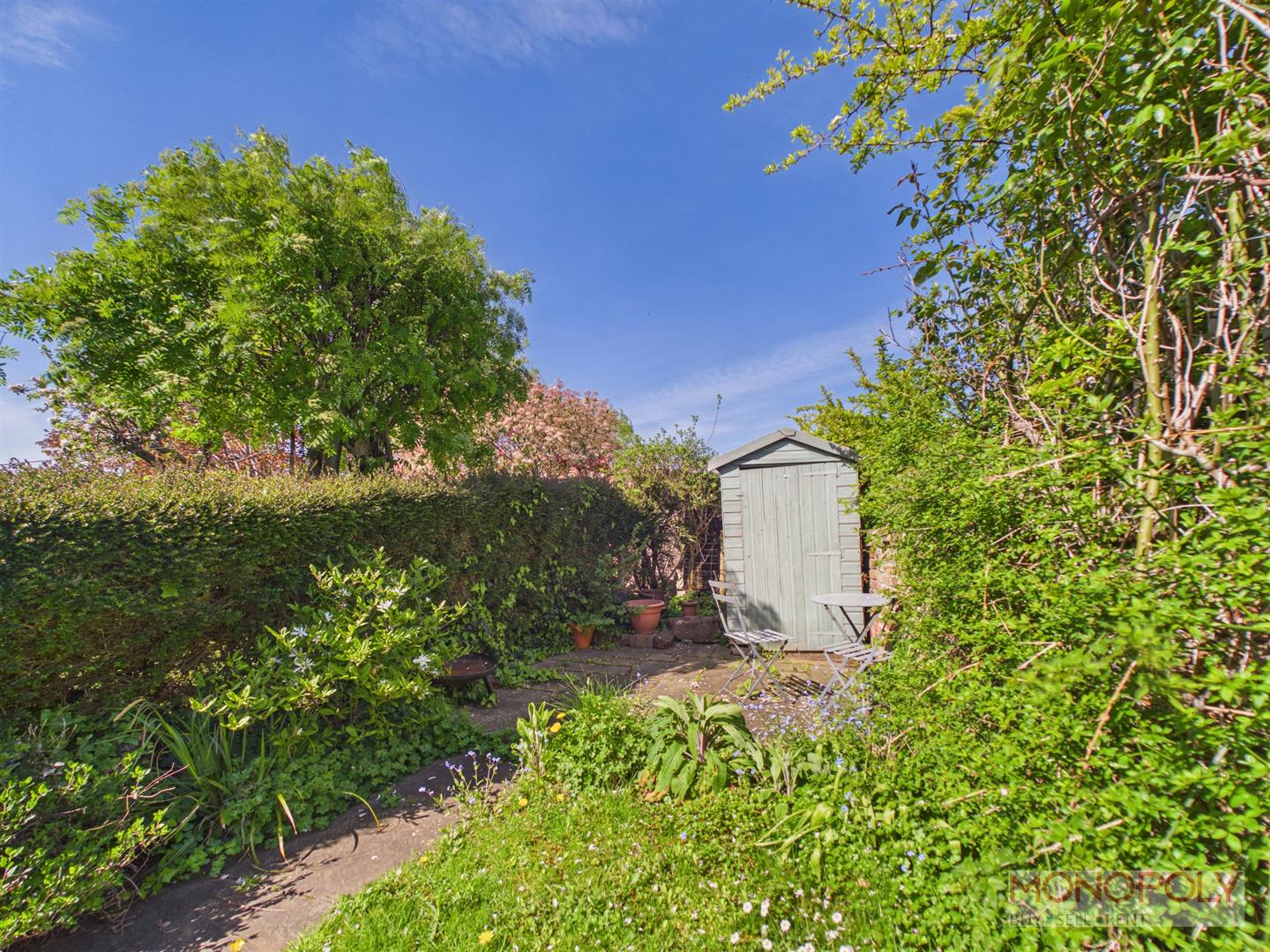 To the front there is on-street parking. To the front there is an attractive cottage garden with steps leading up to the entrance. To the rear the kitchen door opens onto a terraced area with timber shed for storage. Steps lead up to a pleasant lawned garden area with established shrubbberies. This leads to a further paved area for seating and an additional garden shed.