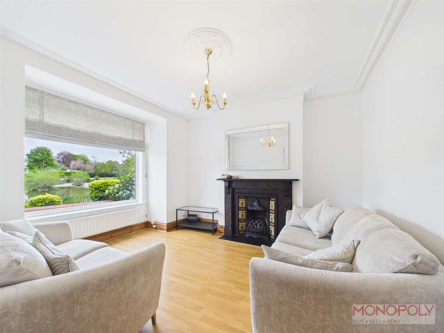 UPVC double glazed window to the front elevation with views of the lake. Original cast iron fireplace showcasing period detailing, coving and ceiling rose. Wooden laminate flooring, ceiling light point and panelled radiator.