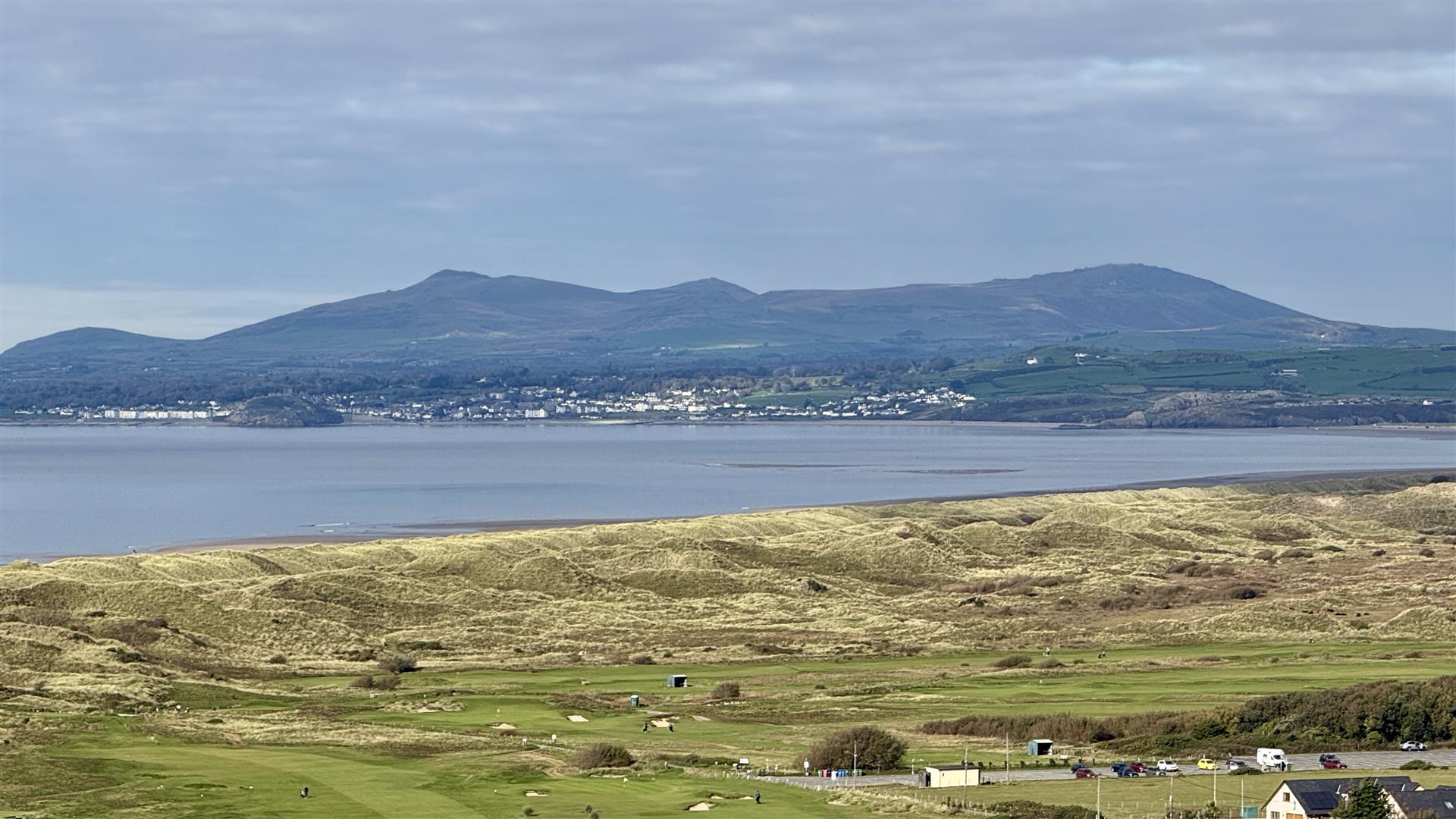 A double bedroom with views of Harlech castle, estuary, Llyn Peninsula and mountain ranges