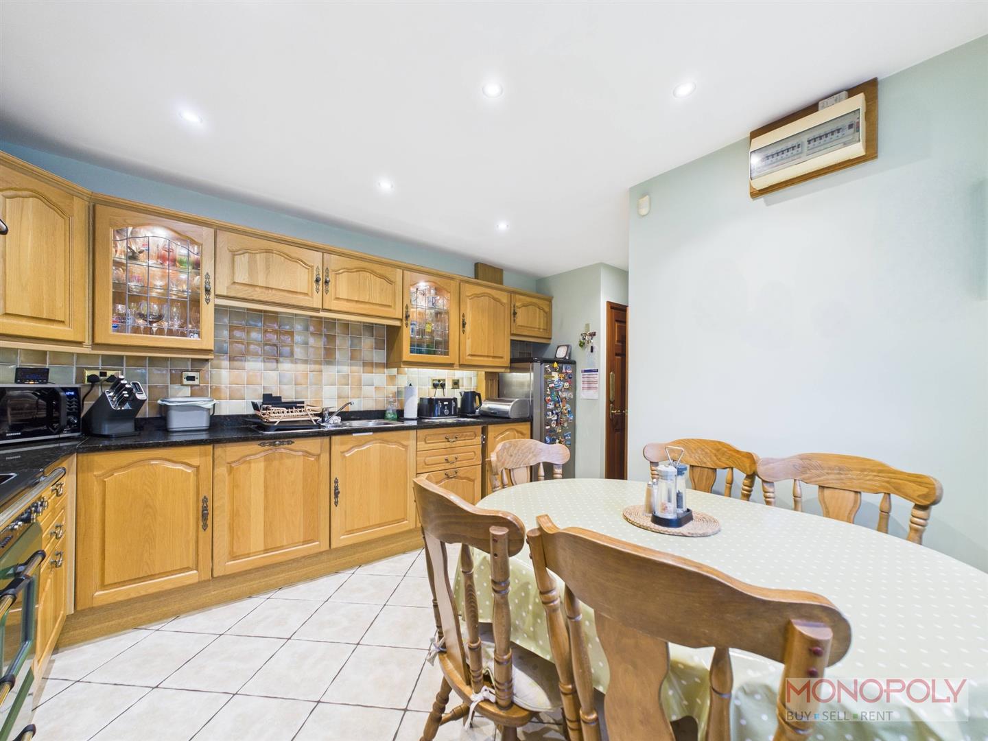 Housing a range of wall, drawer and base units with granite work surface over incorporating 1.5 stainless steel single drainer sink unit with mixer tap over, Leisure Range cooker with five ring gas hob and warmer plate with matching 'Leisure' extractor hood above and integrated dishwasher. Tiled floors, part tiled walls, space for fridge freezer, space for breakfast table, radiator, recessed LED lighting, uPVC double glazed window to the side elevation and door into storage cupboard. Composite part glazed door leads out to the courtyard.