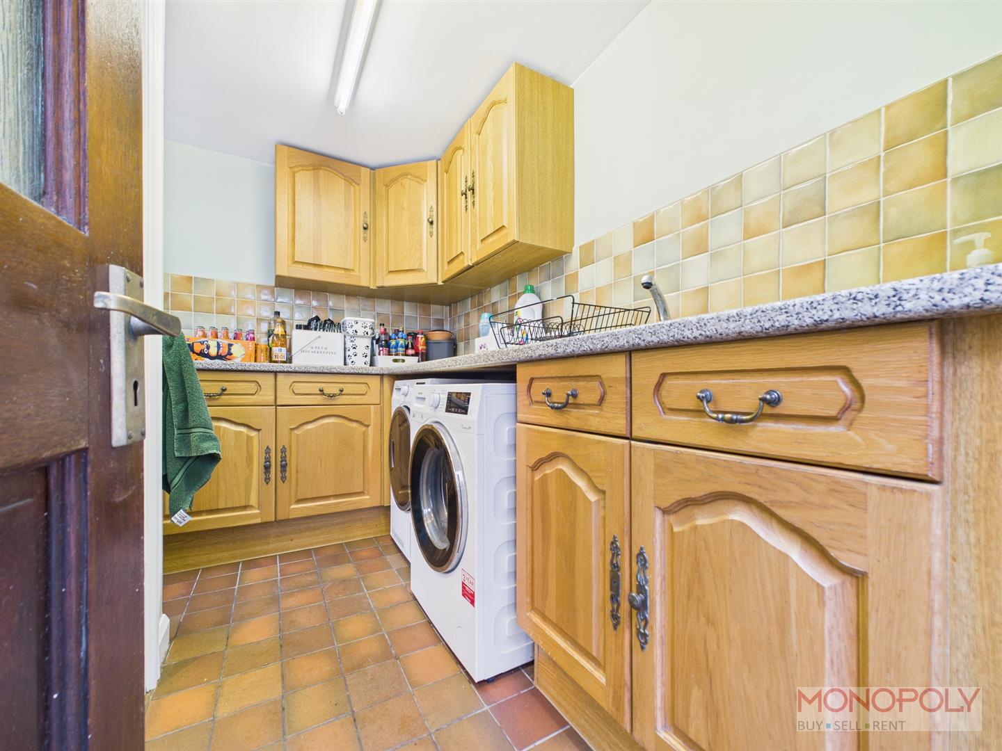 Useful utility room entered via an external door featuring a range of oak fronted wall, drawer and base units with complimentary work surface over incorporating a stainless steel single drainer sink unit. Space and plumbing for a washing machine, space for a tumble dryer, space for a fridge-freezer, radiator, uPVC double glazed window to the rear, part tiled walls and quarry tiled flooring. Door leads into the W.C/Cloakroom.