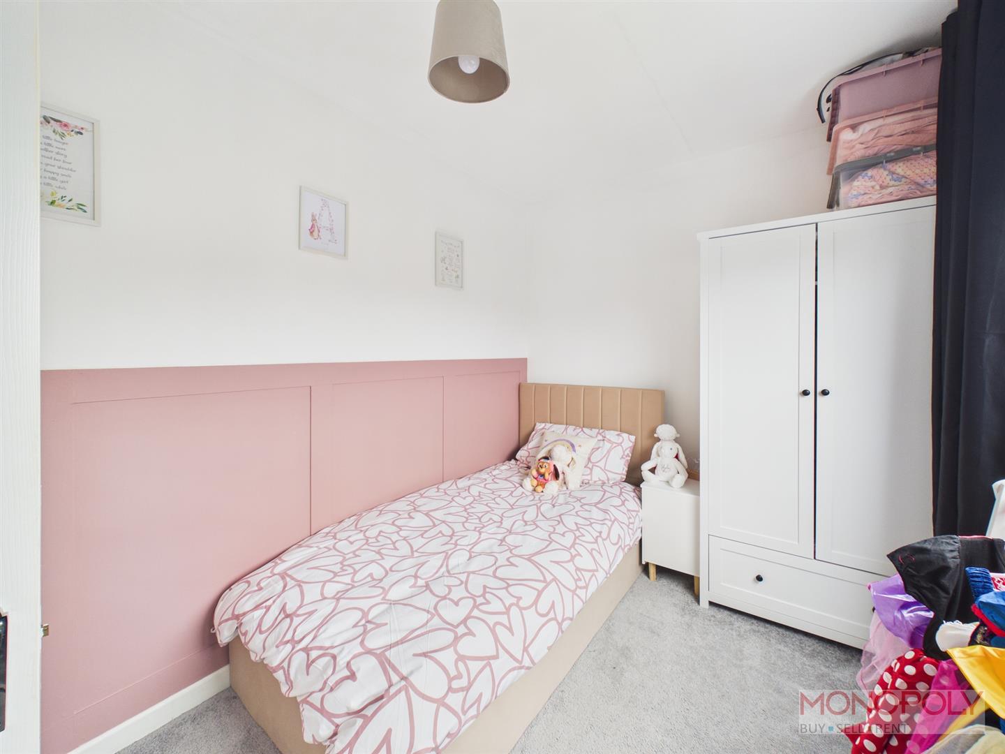 Carpeted flooring, window to front, external door to rear, gas fire with granite effect hearth, timber surround.