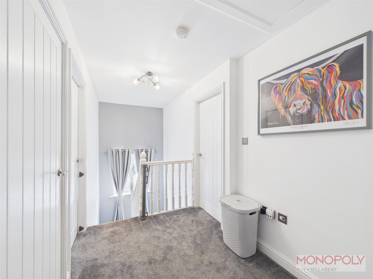 Loft access, carpet, doors to four bedrooms and bathroom.