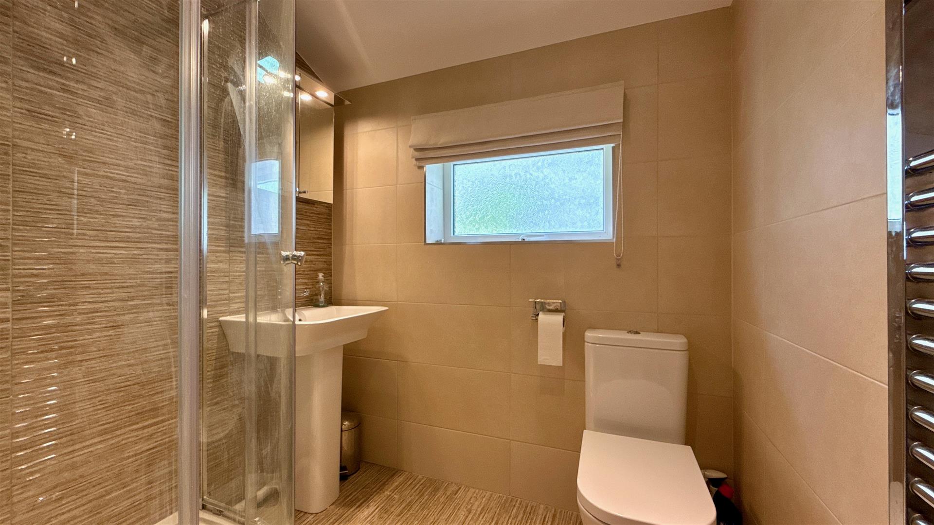 Beautifully appointed and fully tiled with white suite comprising of hand basin, quadrant shower and low level WC. With heated towel rail