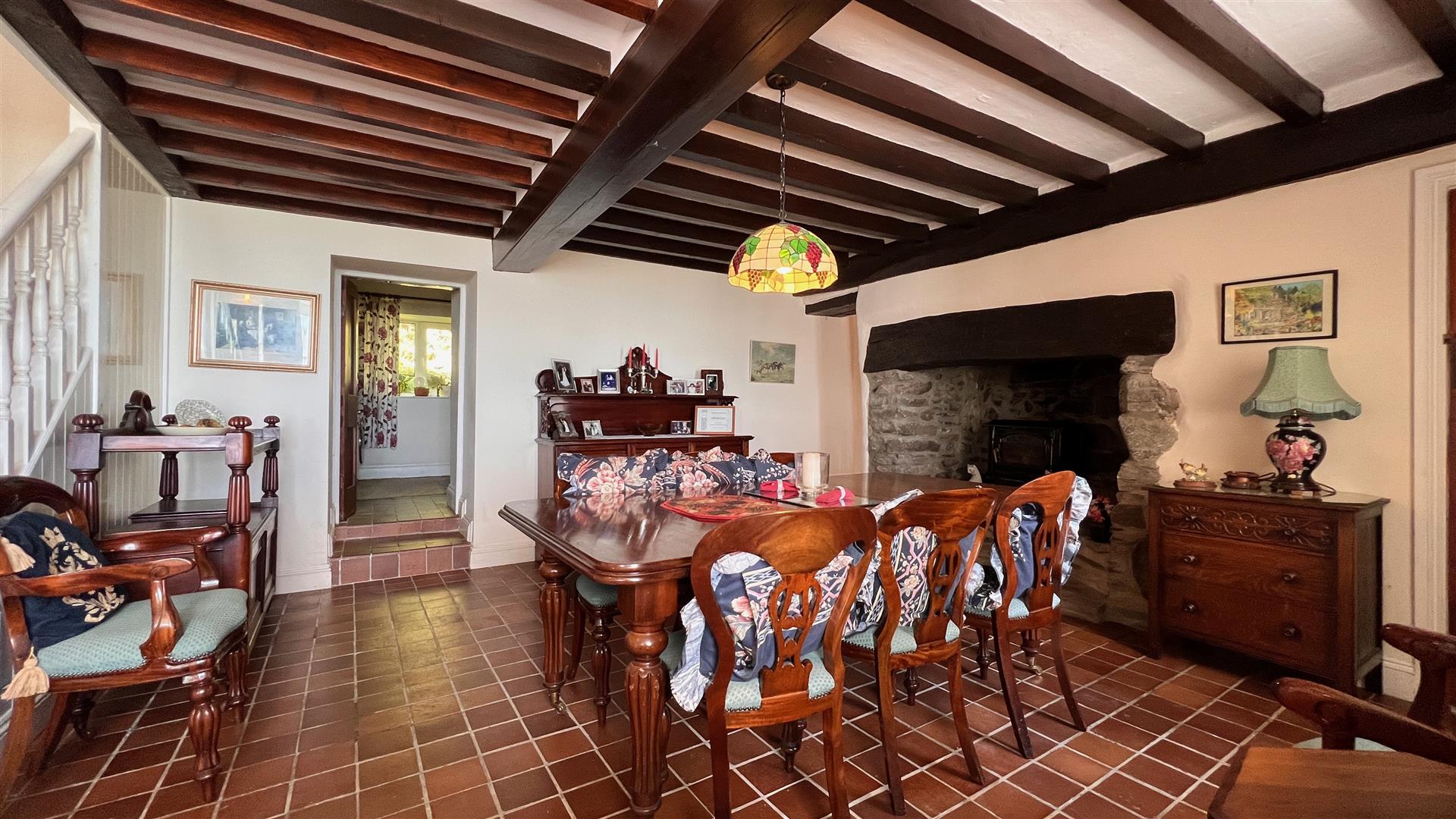 The farmhouse itself is steeped in history and character, with traditional fireplaces, exposed beams and even a stone spiral staircase. It also benefits from a large garage /workshop.