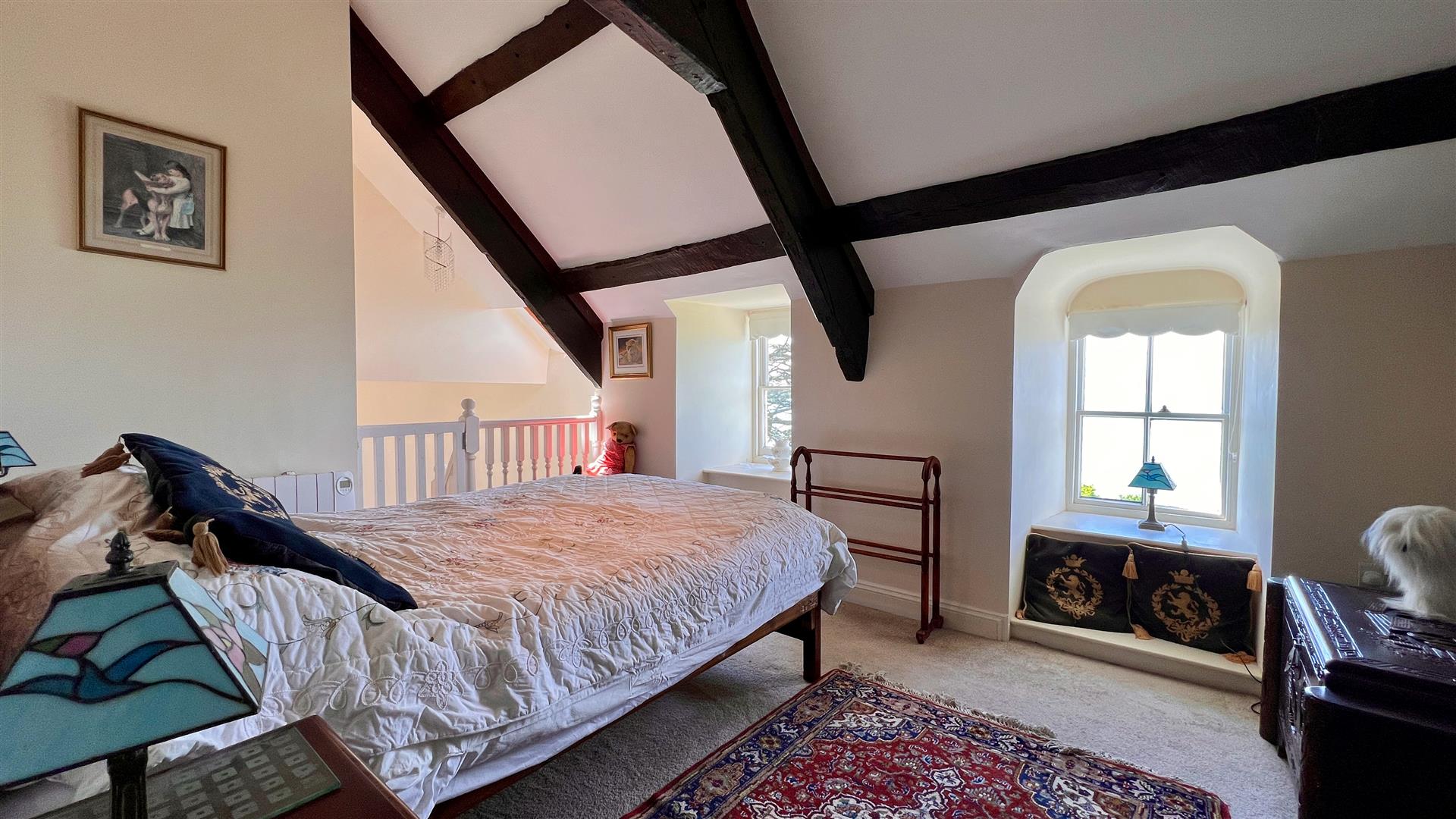 The main staircase leads to a large landing with cosy reading nook.
