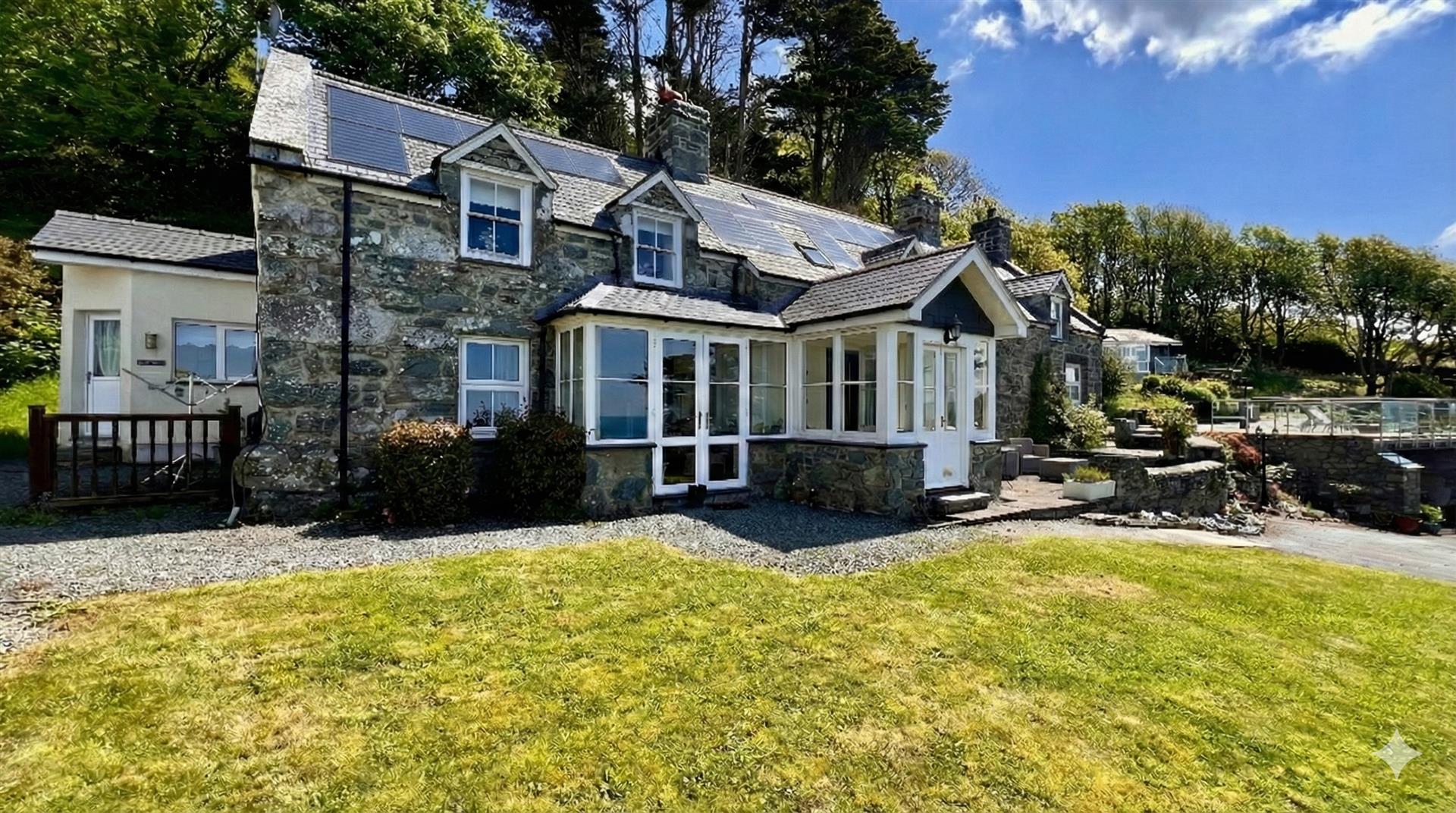 Hillside, woodland and coastal walks are on the doorstep. A stroll down hill leads to a glorious sandy beach, and it is approximately a mile to the bustling resort of Barmouth. A main line station gives access to the Midlands, London and beyond, as well as Birmingham Airport. It is not surprising that property has provided a thriving holiday business for generations, being both a bed and breakfast providing afternoon tea for walkers and also operating as a self catering business for the current owner. The property has been maintained to an exceptionally high standard with recent replacement flat roof and (all new) work certified by building control.