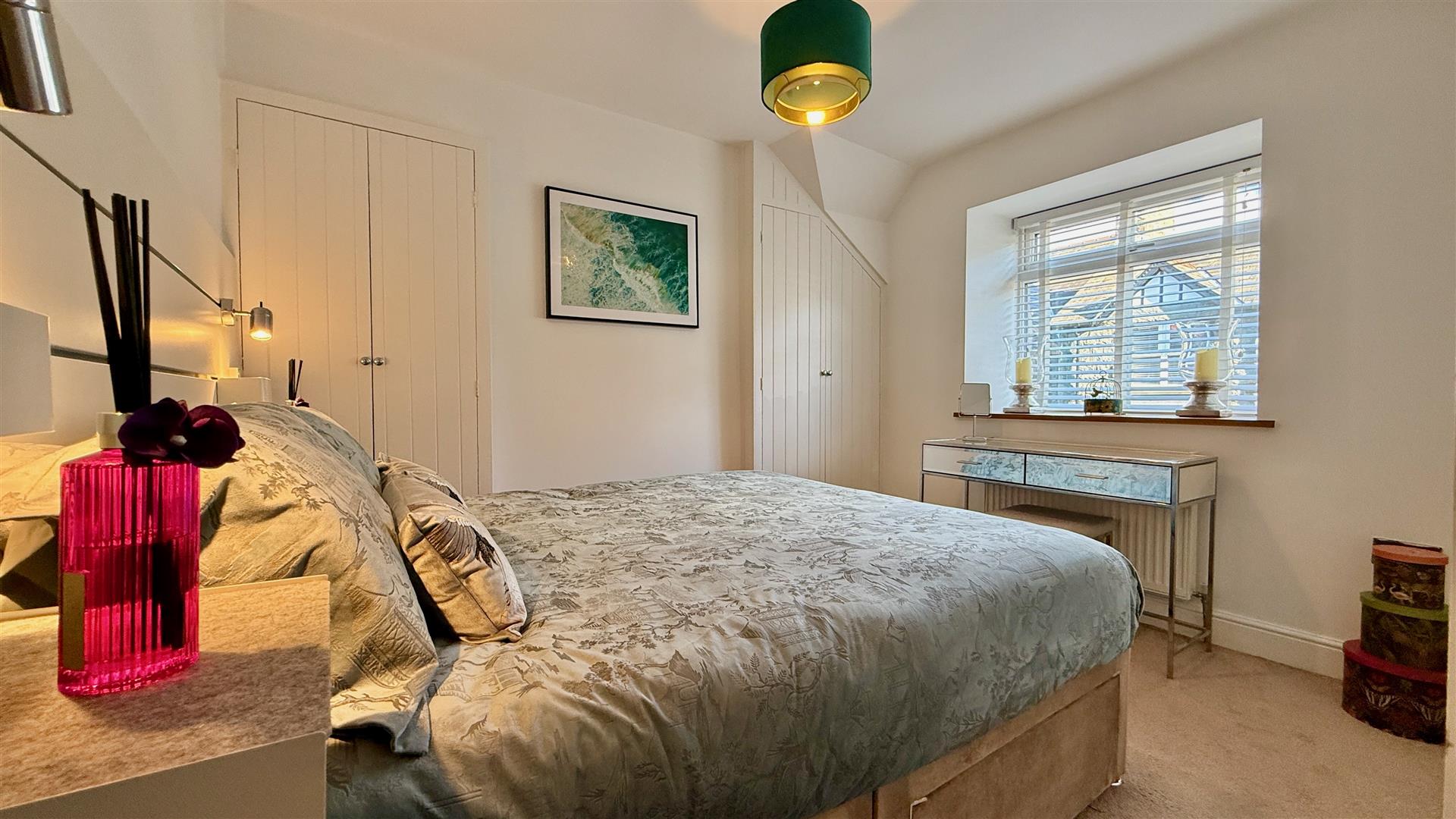Double bedroom with deep sill and views to the front and two built in wardrobes.