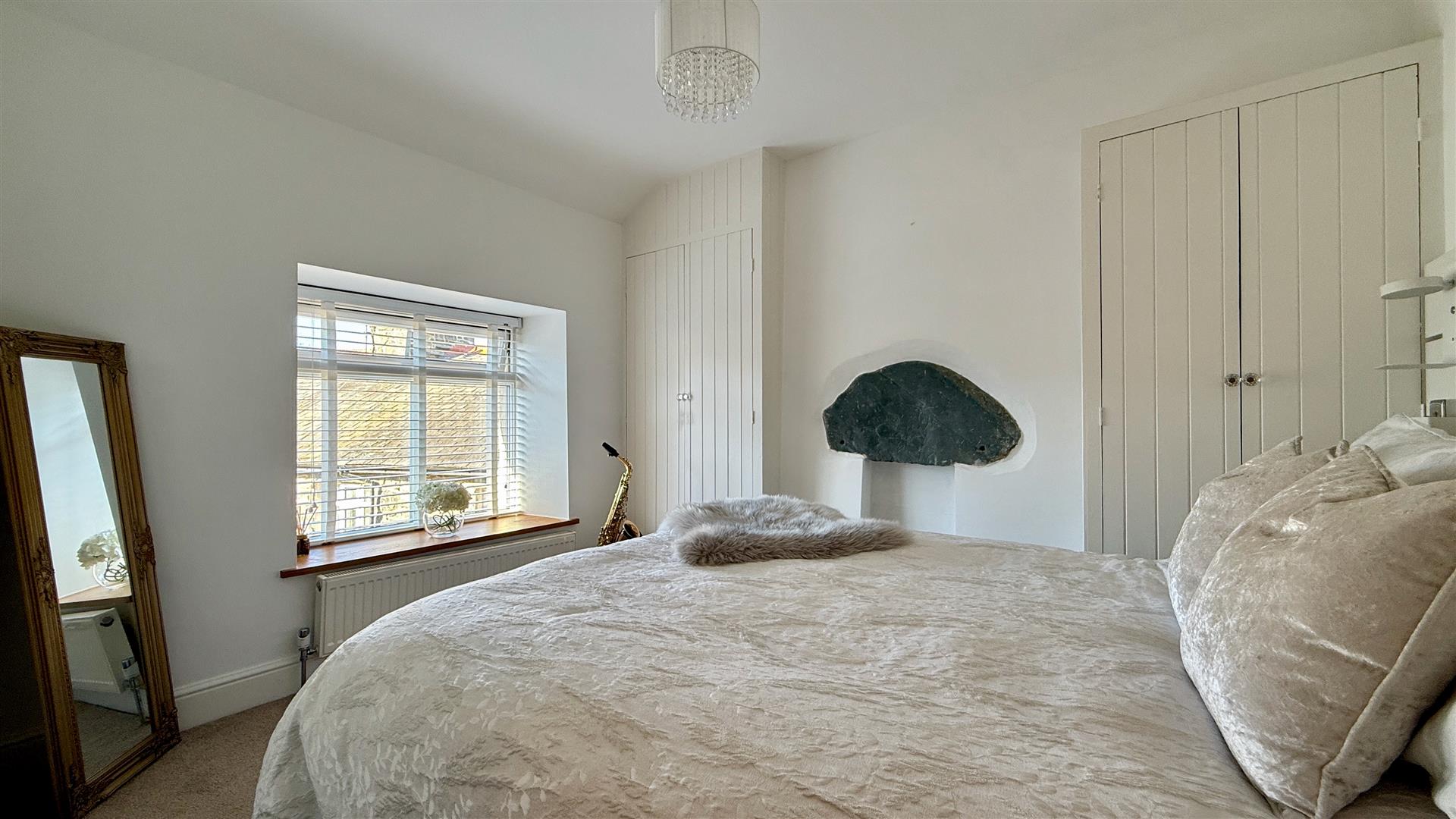 Double bedroom with deep sill and views over the garden to the rear. With original stone lintel and two built in wardrobes.