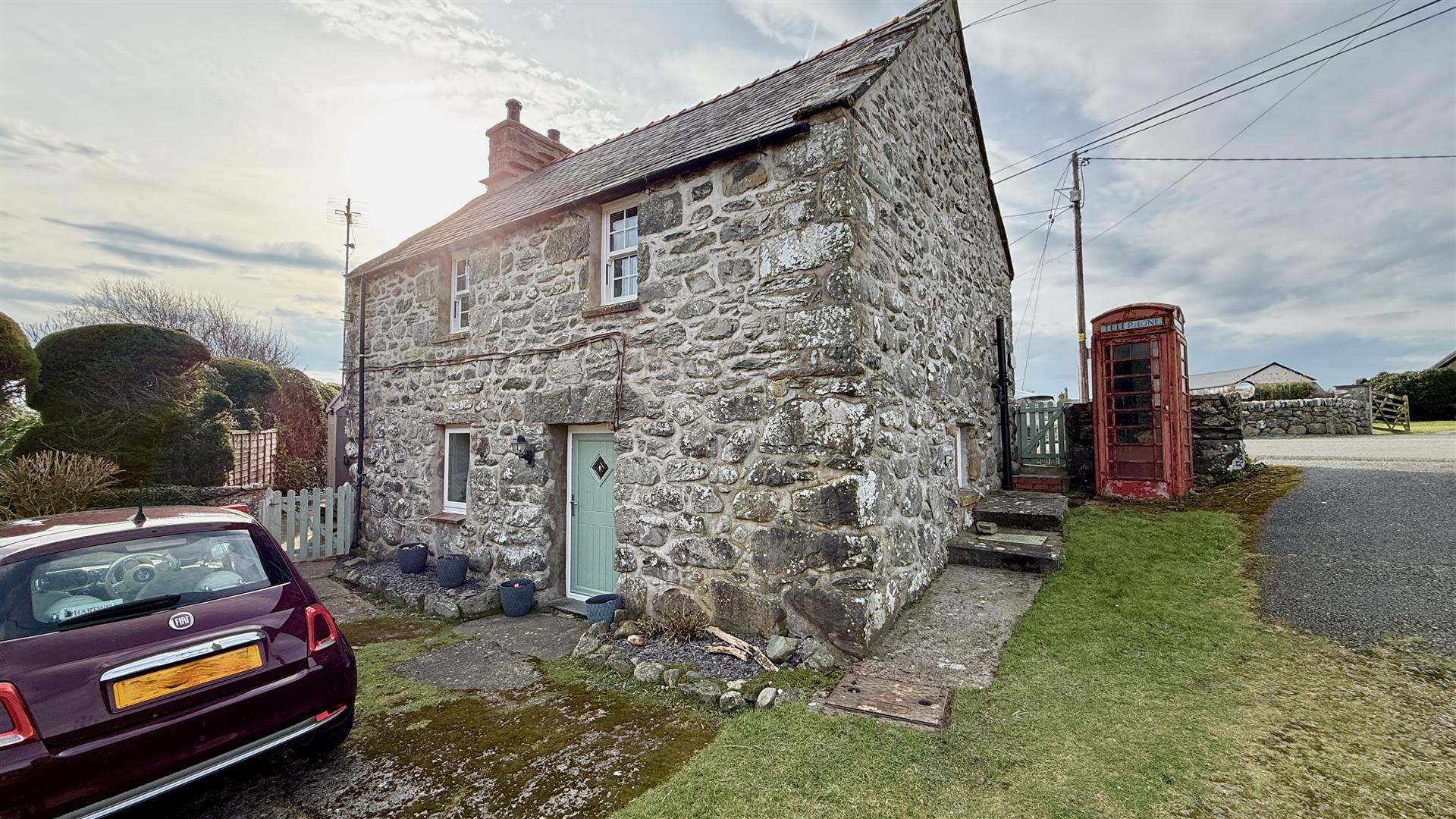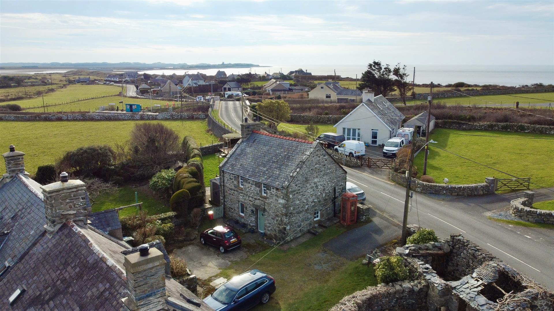 The property is located within a pretty courtyard of traditional stone cottages and is approached via Y Bwthyn's private pathway to the front door. To the front of the cottage are flower beds and borders. To the rear is a good sized garden with elevated decking providing sea, rural and mountain views and leading on to a good sized flat lawn with mature flowers, bushes and shrubs. Steps lead down to the rear porch. There is a Ketler shed with electric and space for a tumble drier, a brick built lean to store with electric.