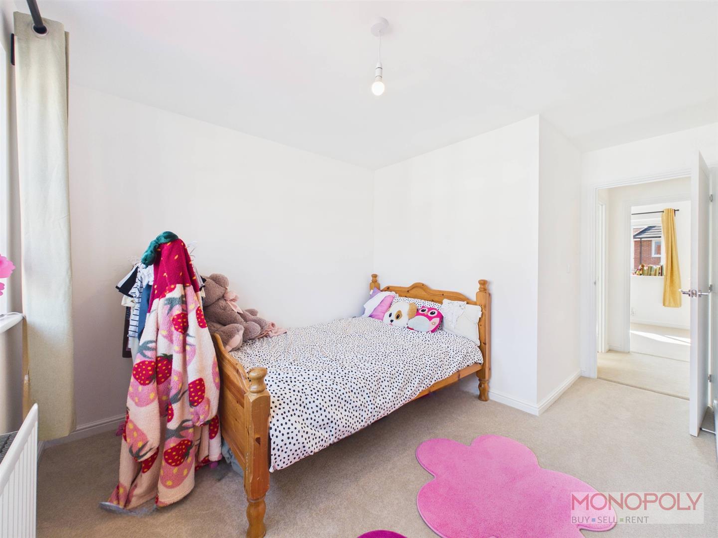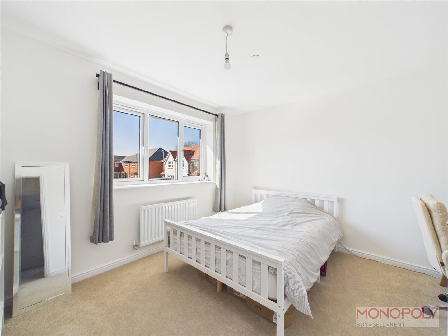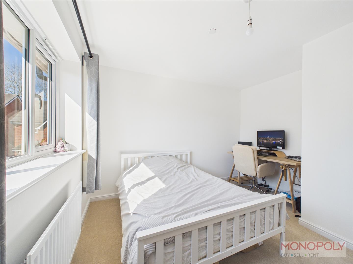 UPVC double glazed window to the front elevation, radiator, ceiling light point and carpeted flooring.