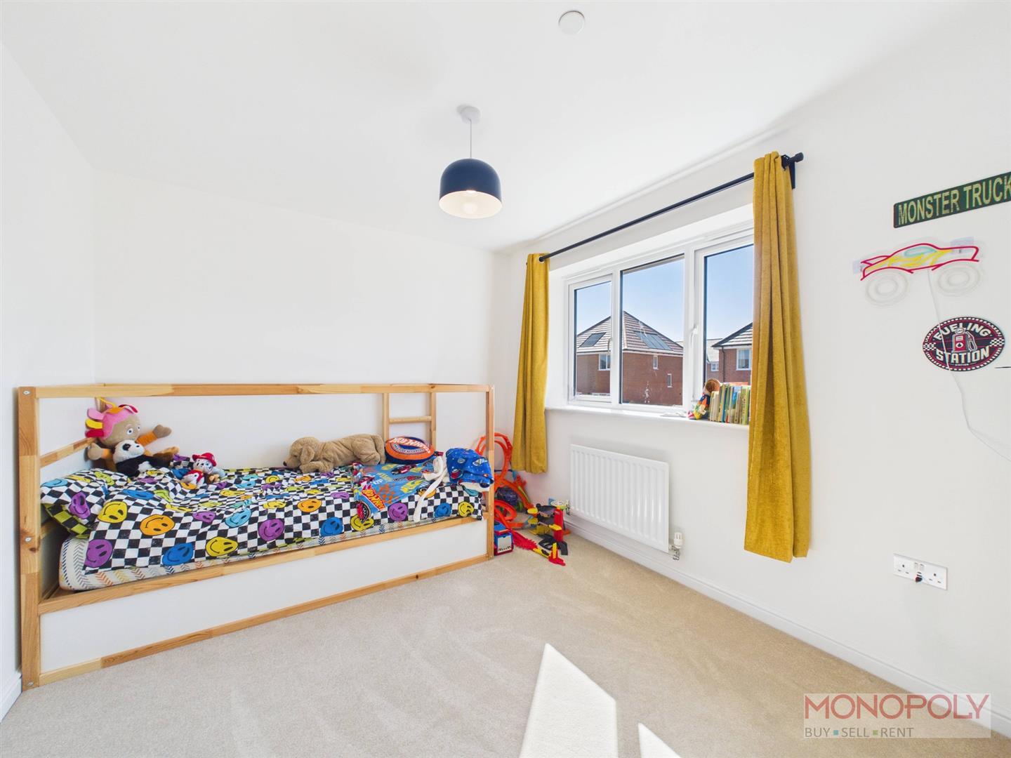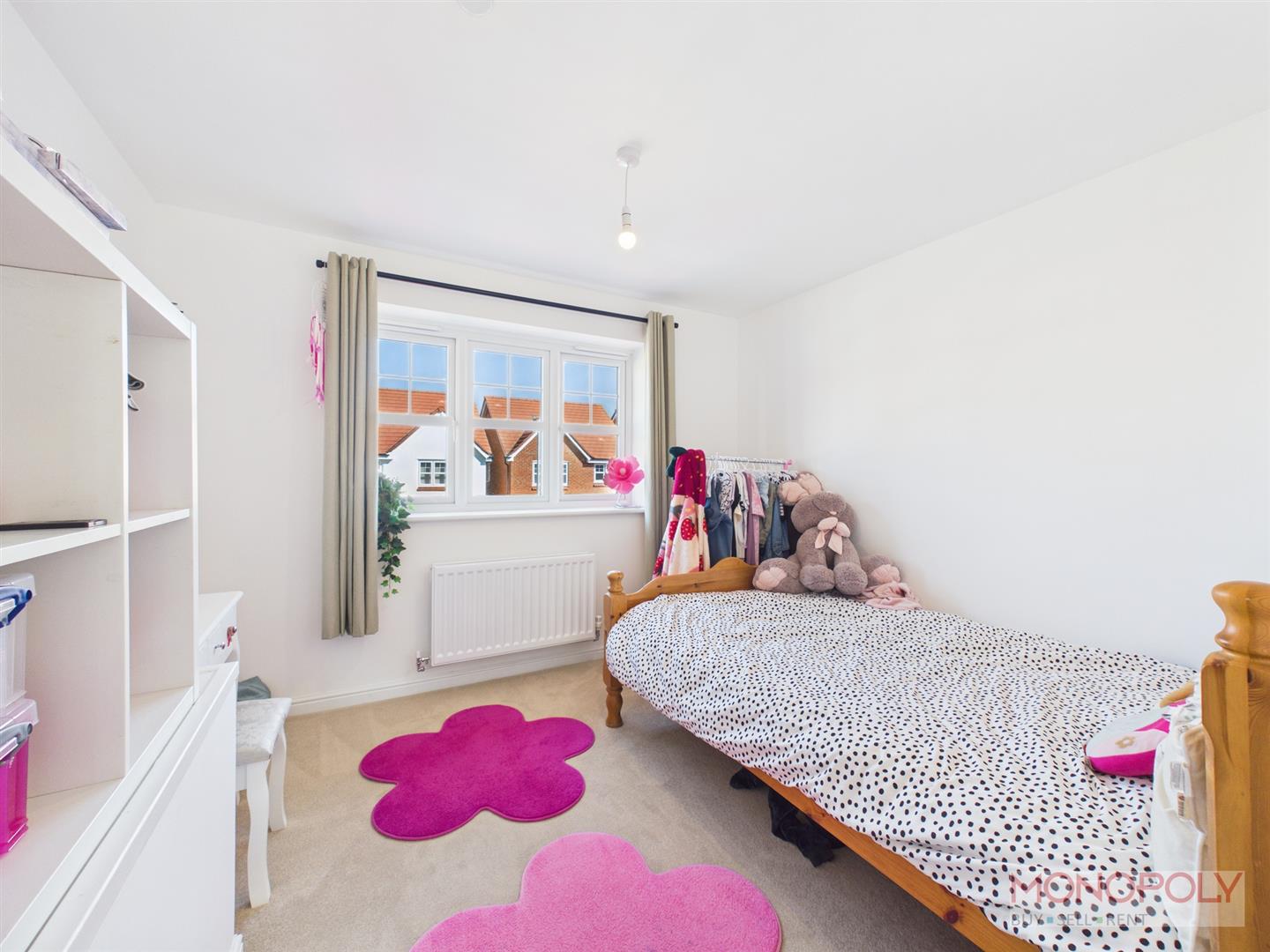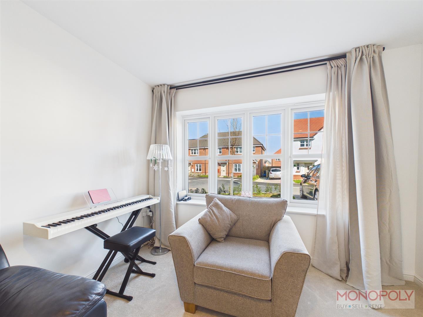 UPVC double glazed window to the front elevation, radiator, ceiling light point and carpeted flooring.