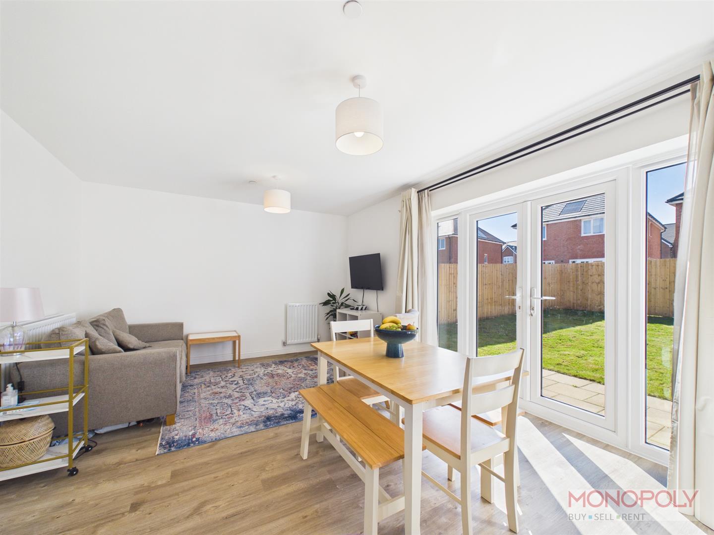 The ground floor comprises a welcoming entrance hallway, a separate lounge, and an impressive open-plan kitchen/dining/sitting area – perfect for everyday living and entertaining – along with a convenient downstairs WC.
