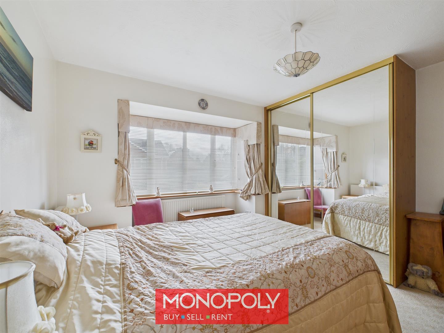 A generous double bedroom with dual-aspect double-glazed windows, fitted mirrored sliding wardrobes, carpeted floor, and radiator.
