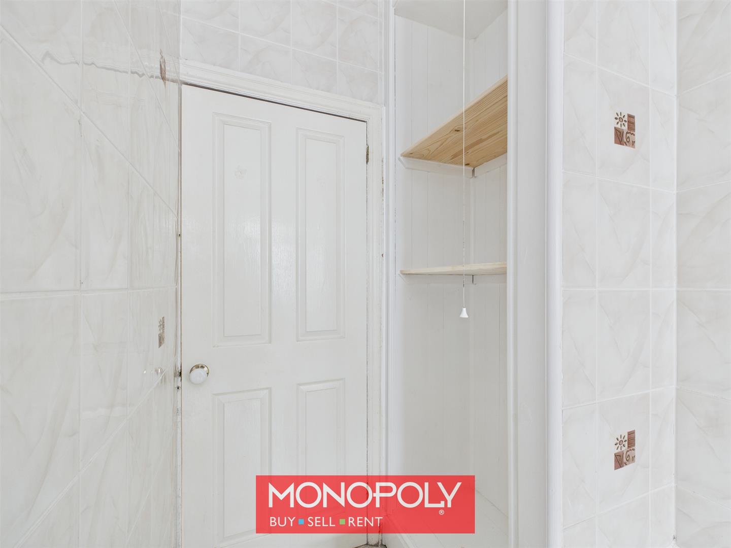 Designed for function with faux-tile vinyl flooring and space for white goods. A wooden door with obscure glazing, cat flap, and a side double-glazed window completes this versatile area.