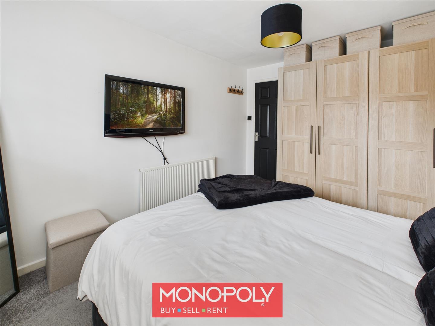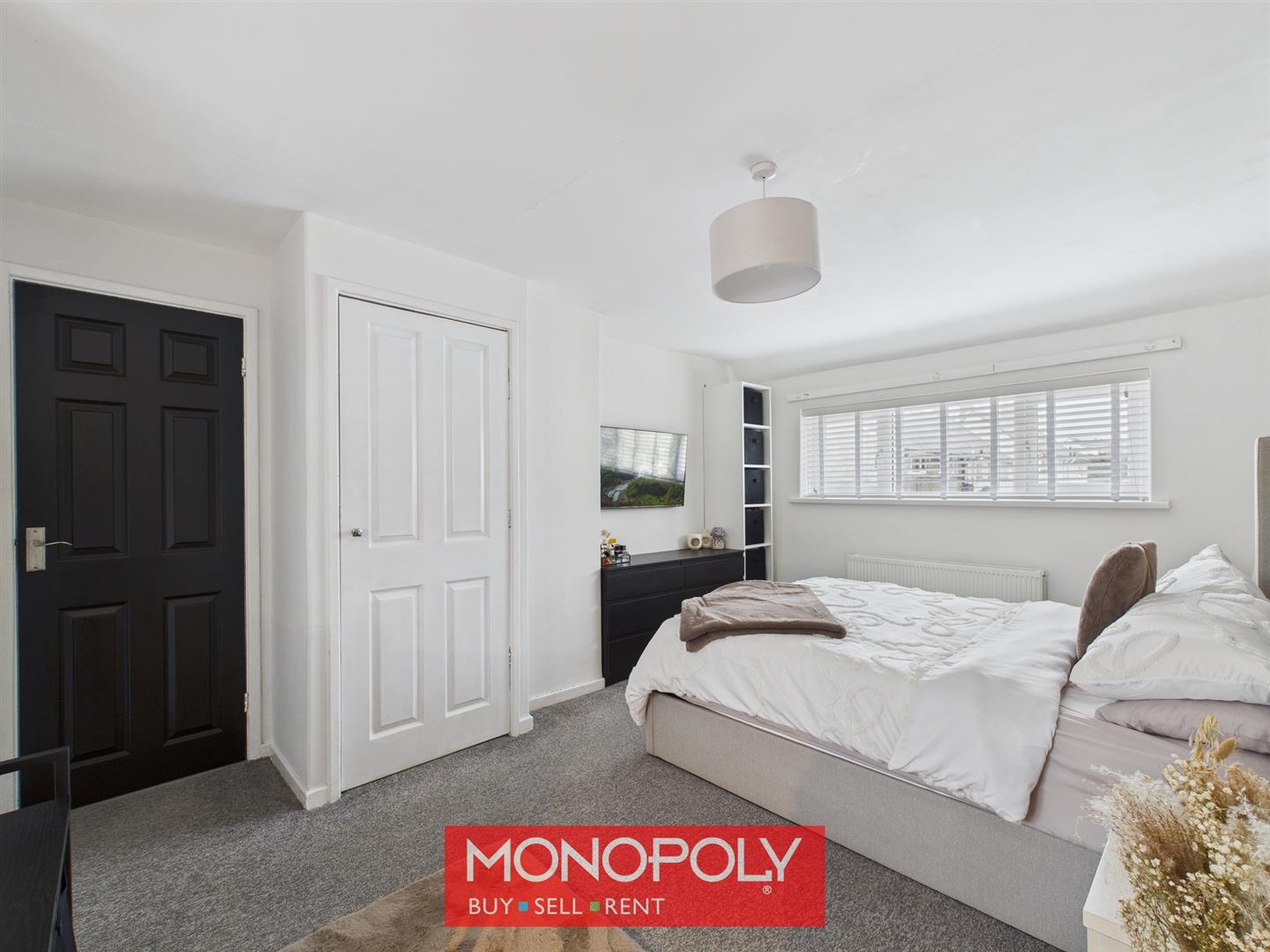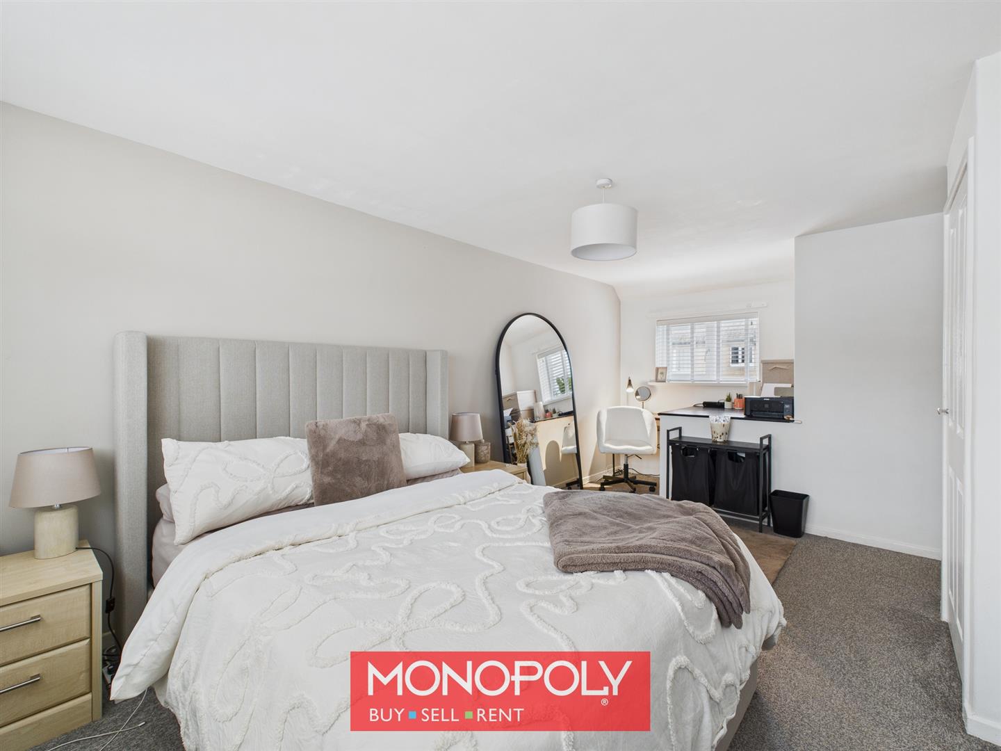A generous master bedroom, benefits from dual-aspect windows to the front and rear of the property with carpeted flooring. Built-in shelving and an airing cupboard housing the hot water tank provide excellent storage, with ample space available for a desk and wardrobes.
