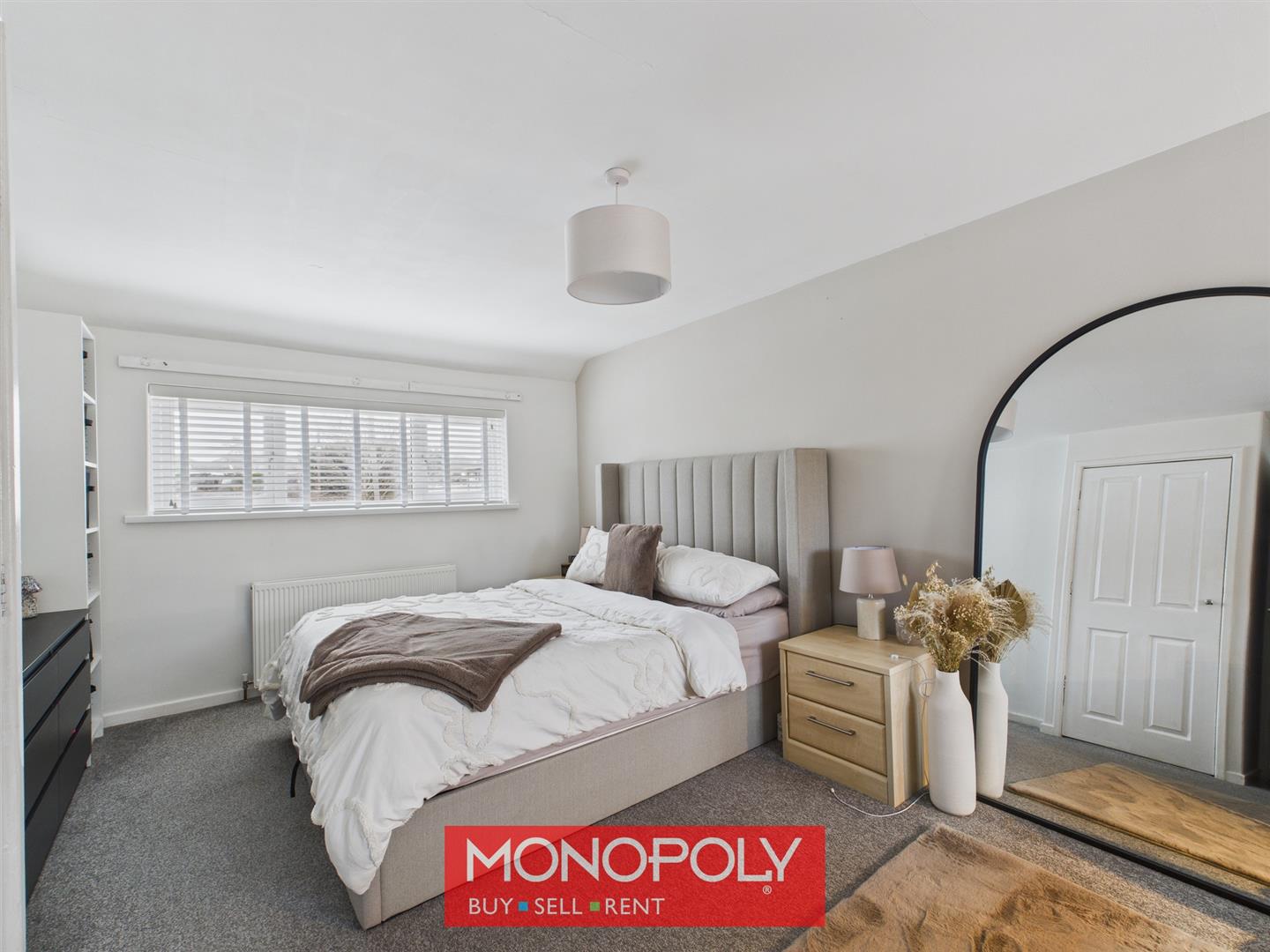 A well-proportioned double room, carpeted and fitted with modern double wardrobes. A uPVC window overlooks the front of the property and a radiator complete the space.