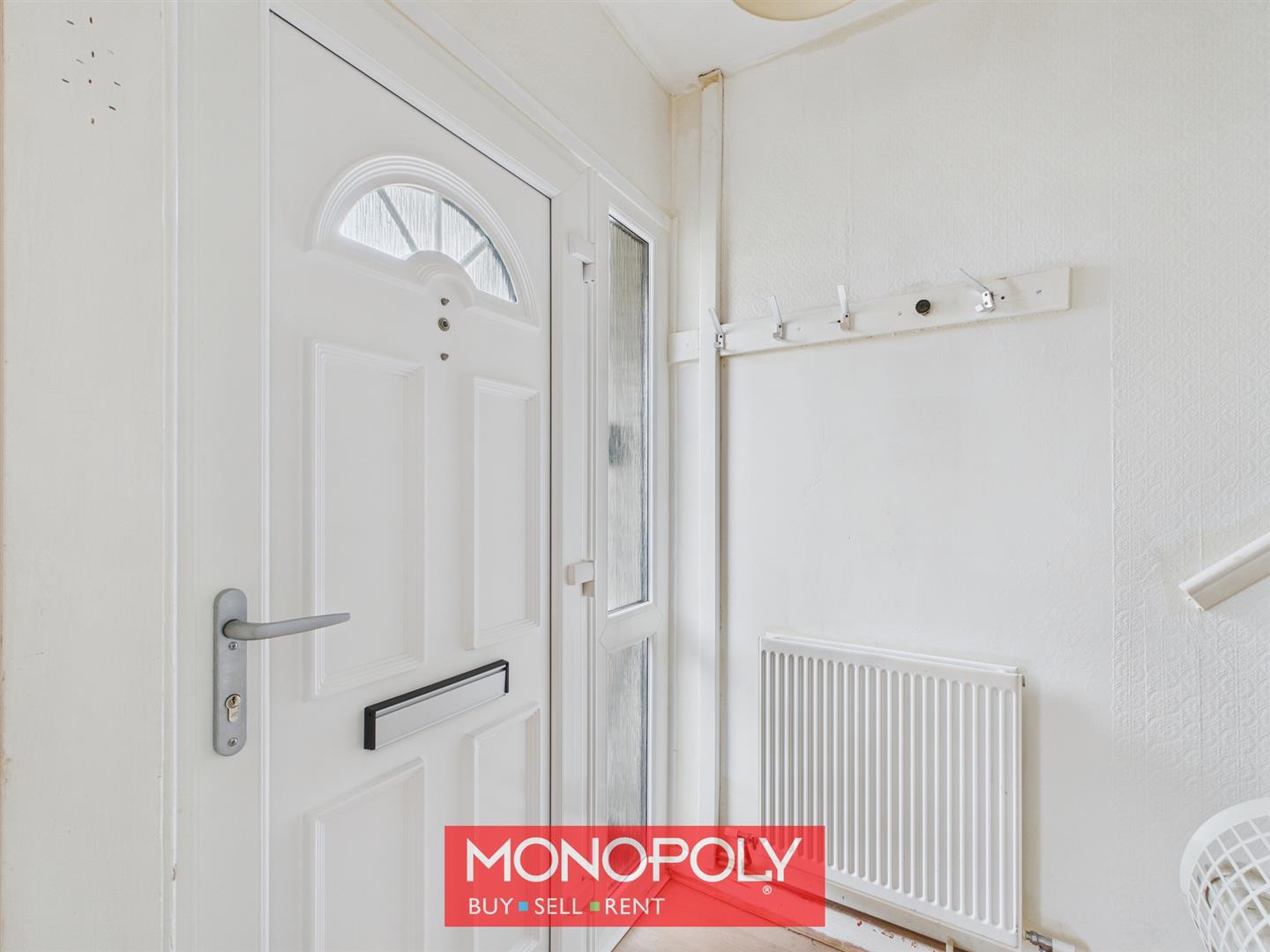 The rear porch offers a useful additional space with a tiled floor, access to a storage cupboard beneath the stairs, a door to the downstairs WC, and an external door leading to the rear garden.