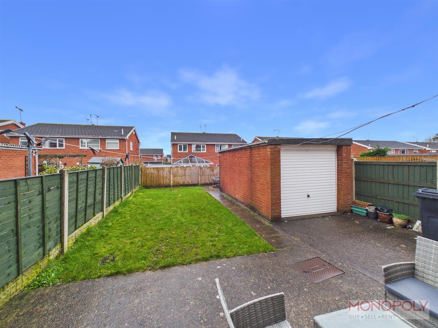 Good sized rear garden with hardstanding sitting area which is an extension of the driveway, which in turn leads to the lawned garden which is enclosed by panel fencing.