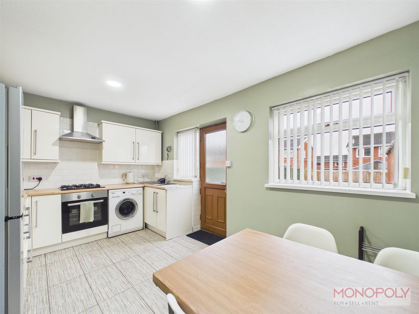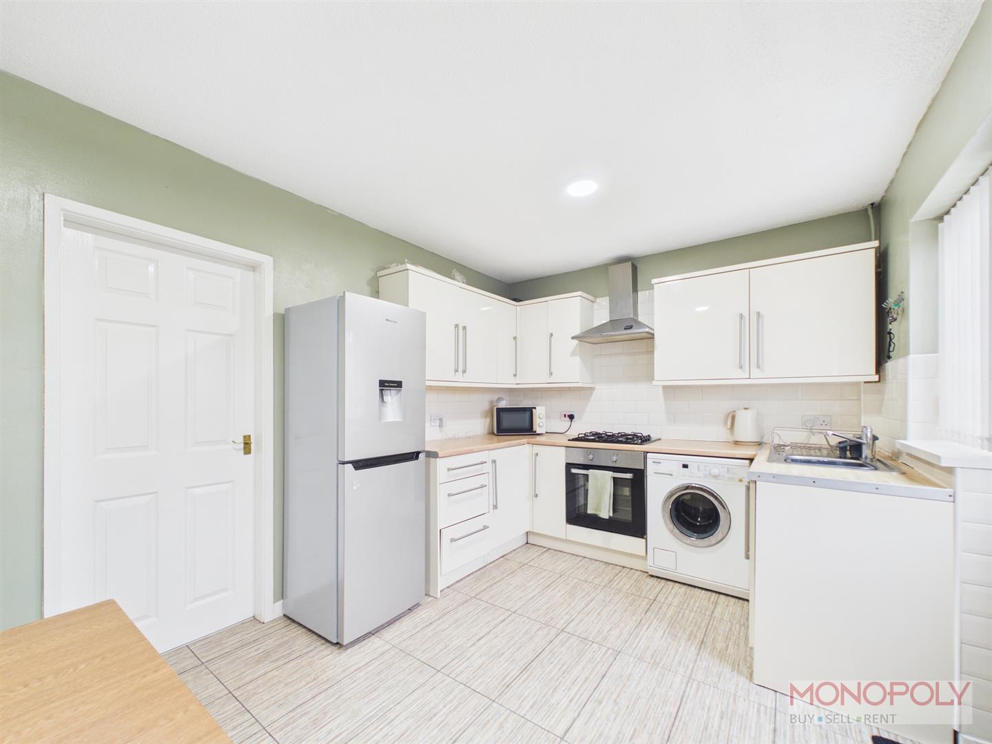 Comprising of a good range of wall and base cupboards with complementary worktop surfaces incorporating Four ring gas hob, electric oven/grill with stainless steel canopy extractor hood above, plumbing for washing machine, tiled flooring, under stairs cupboard, Two UPVC Double glazed windows to the rear, double panel radiator. UPVC Double glazed and frosted door to the rear garden.