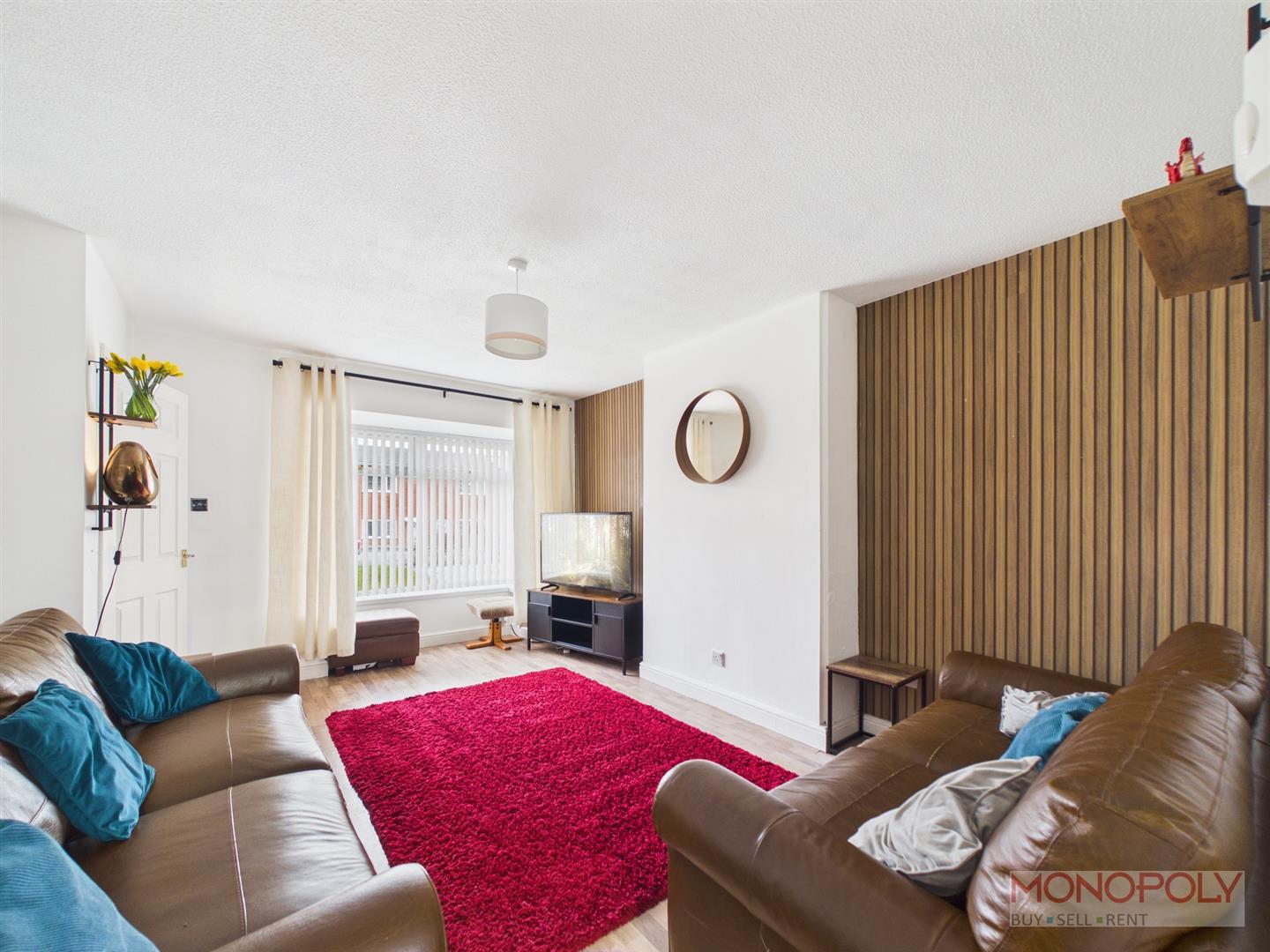 With UPVC Double glazed bay window to the front, laminate flooring, single panel radiator and door to the kitchen/diner. Media style wood panel walls either side of chimney breast.