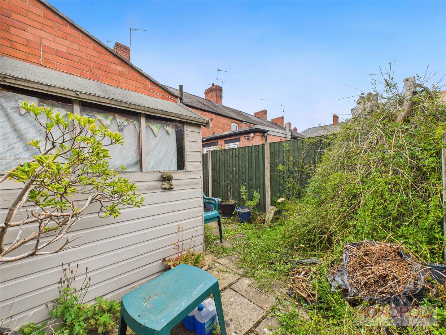 To the front there is a courtyard area. To the rear is a further paved courtyard area, shed and timber gate leading to the rear where there is space for one vehicle for off street parking.