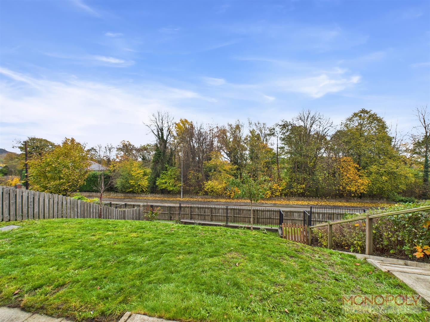 The property can be accessed from both the front and rear. To the rear, there is a driveway and detached garage, with access through a timber gate leading into the garden. To the front, the home enjoys an elevated position with a pleasant countryside outlook. A sheltered porch sits above the entrance, complemented by a lawned garden and steps leading down to a shared pathway along the front of the properties. Gated access is available on both sides of the home leading to the rear garden. The south-westerly facing rear garden benefits from a good degree of sunshine throughout the day, making it ideal for outdoor relaxation and entertaining. It features a paved patio area, currently housing a hot tub (available by separate negotiation), with steps leading up to an artificial lawn and direct access to the garage. Additional features include outside lighting and a tap located within the garage, providing convenience for outdoor use.