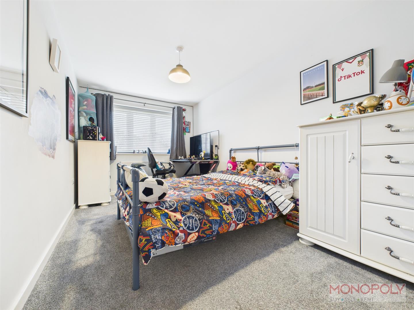 UPVC double glazed window to the front elevation with blinds, access to loft, radiator, carpet flooring and ceiling light point.