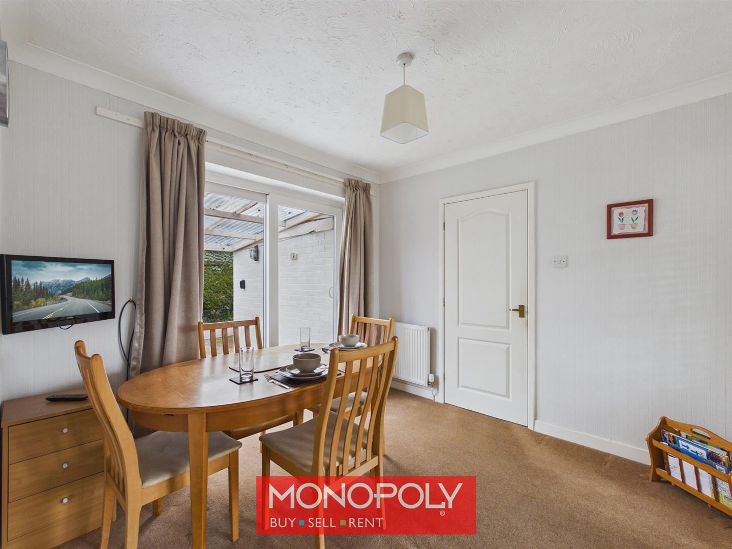 Ideal for family dining and entertaining, with carpeted flooring and patio doors opening directly to the rear garden. Doors to hallway and kitchen.