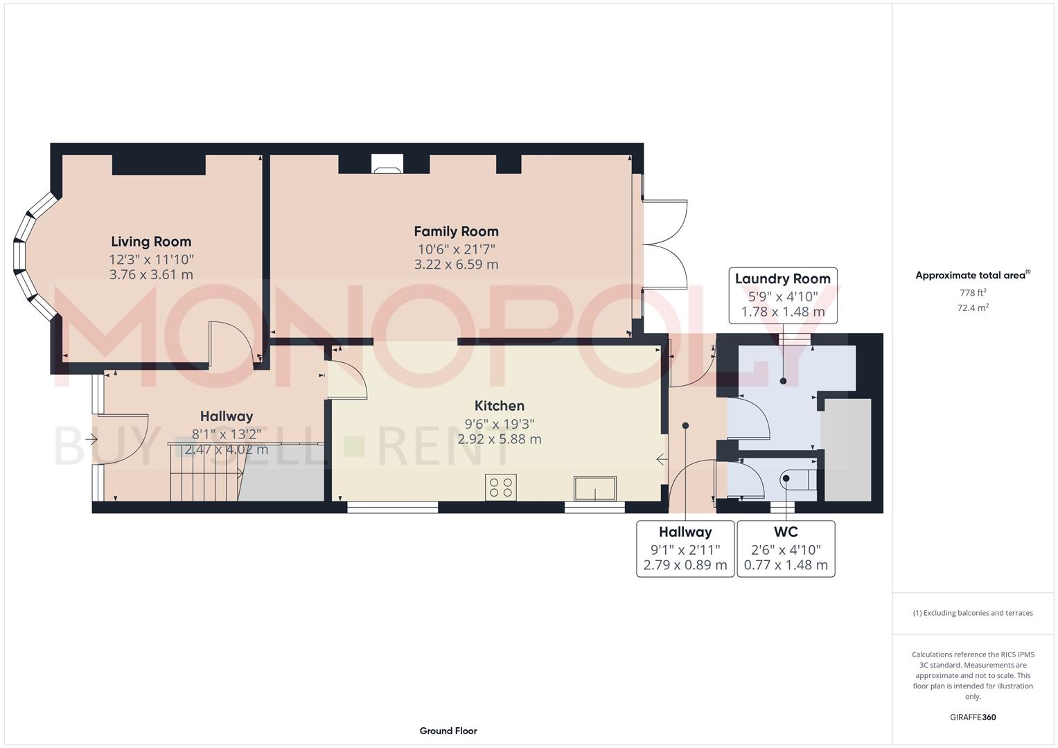 With tiled flooring, two doors one to the side of the property and one off to the rear garden, doors to the utility area and downstairs w.c.