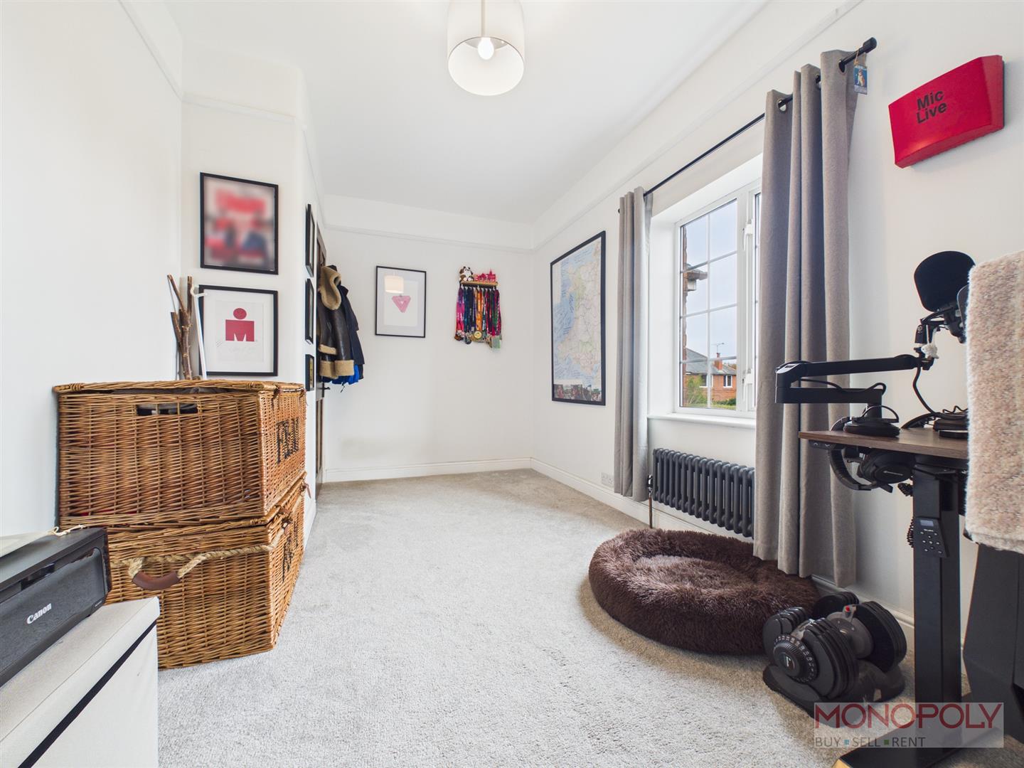 UPVC double glazed window to the rear elevation overlooking the garden area. Feature fireplace with decorative surround, carpet flooring, anthracite radiator and ceiling light point.