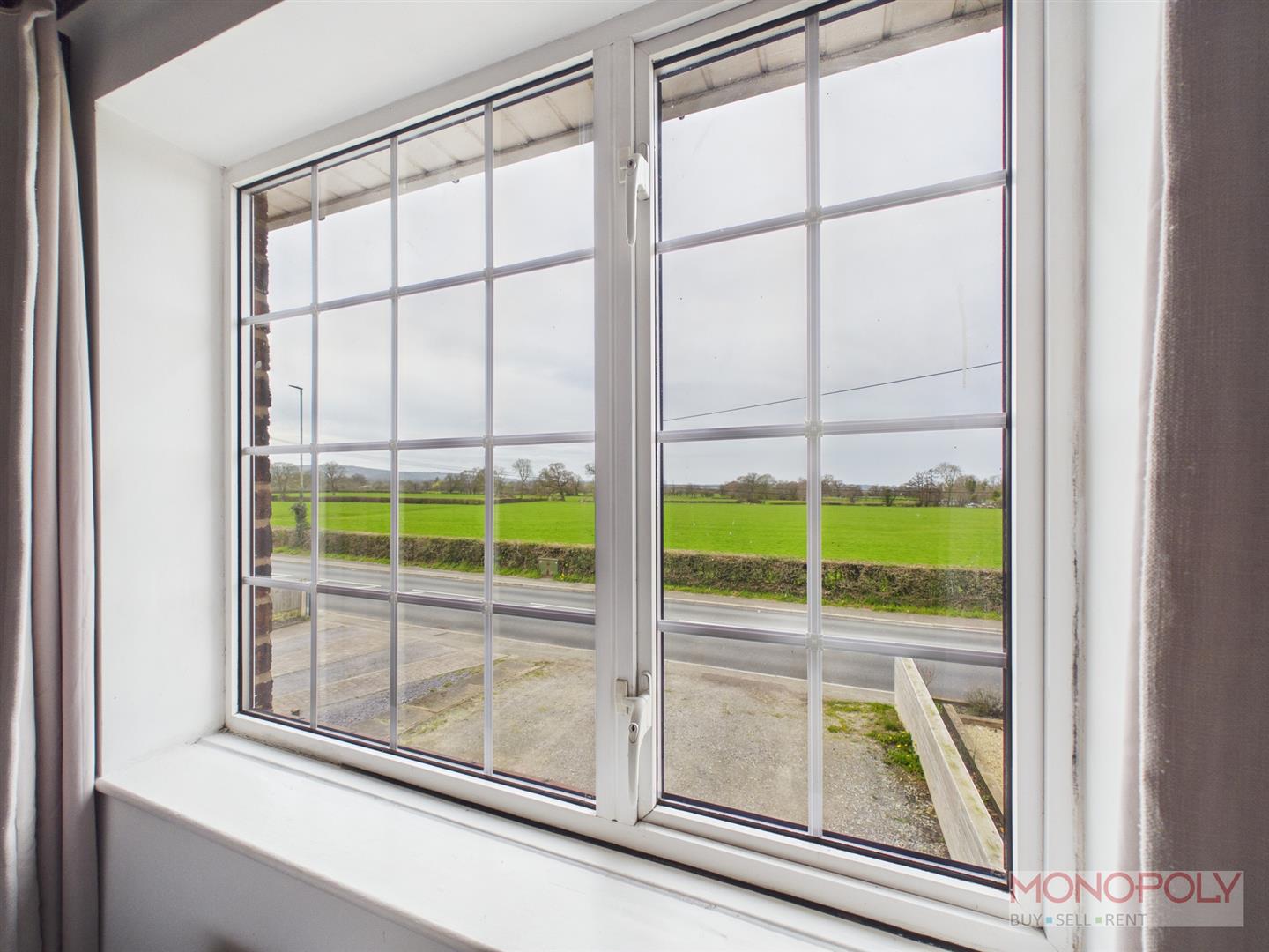 UPVC double glazed window to the front elevation with far-reaching countryside views. Feature fireplace with decorative surround, exposed original wooden flooring, anthracite radiator and ceiling light point.