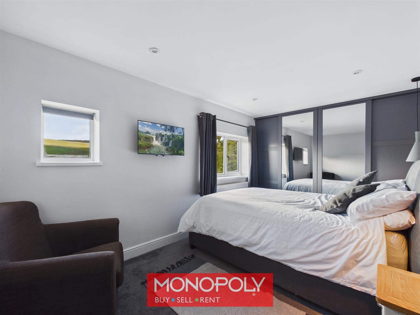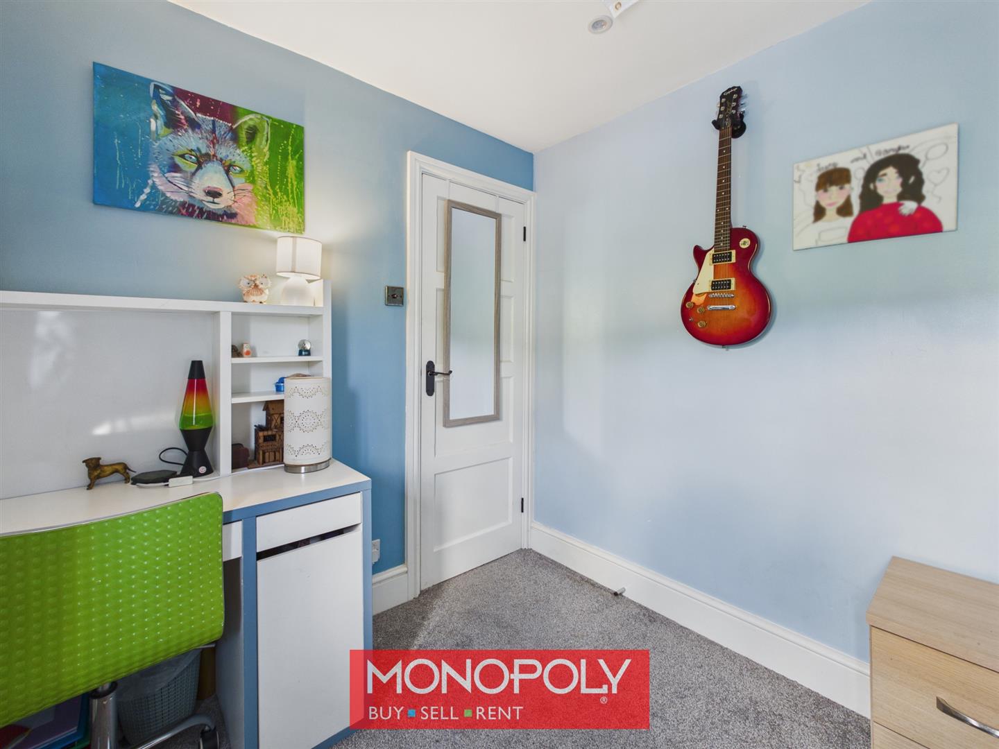 Bedroom three is a further carpeted double room with a double glazed window to the front, radiator, and downlights.