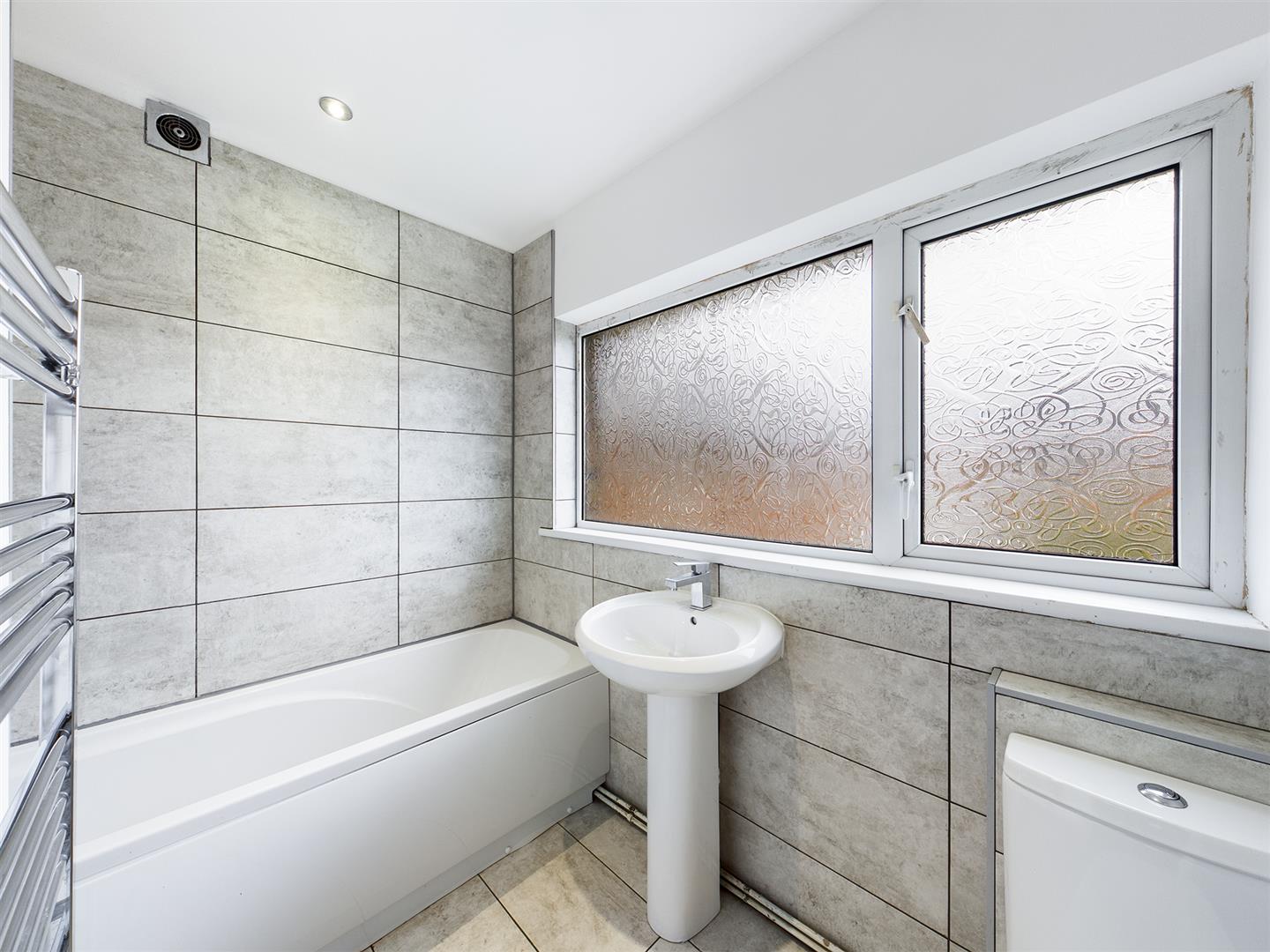Fitted with a modern suite comprising of a low level w.c, wash hand basin, bath, tiled flooring, chrome towel rail/heater, part tiled walls, double glazed window.