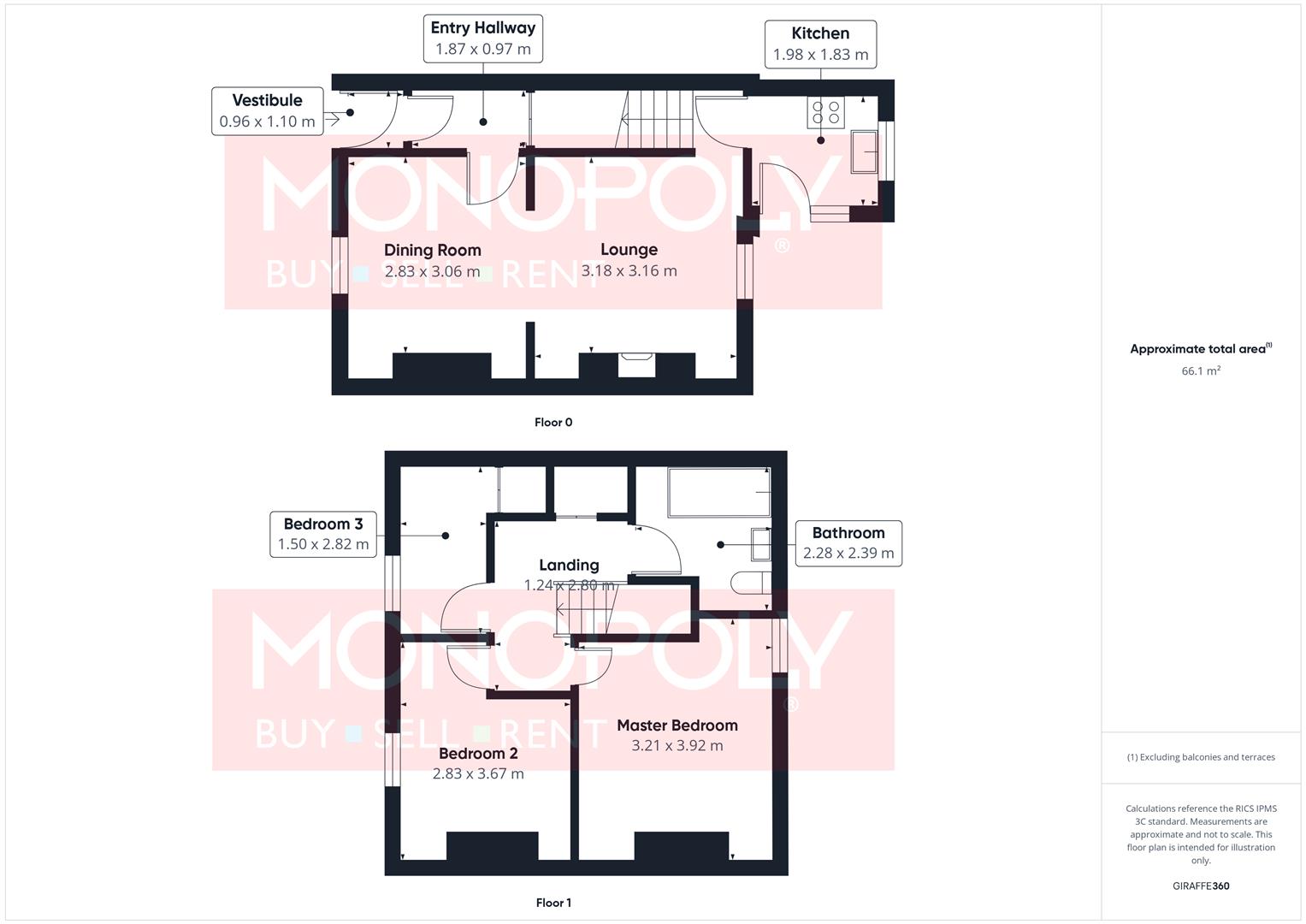 0.96 x 1.10 . 1.87 x 0.97 (3'1" x 3'7" . 6'1" x 3'