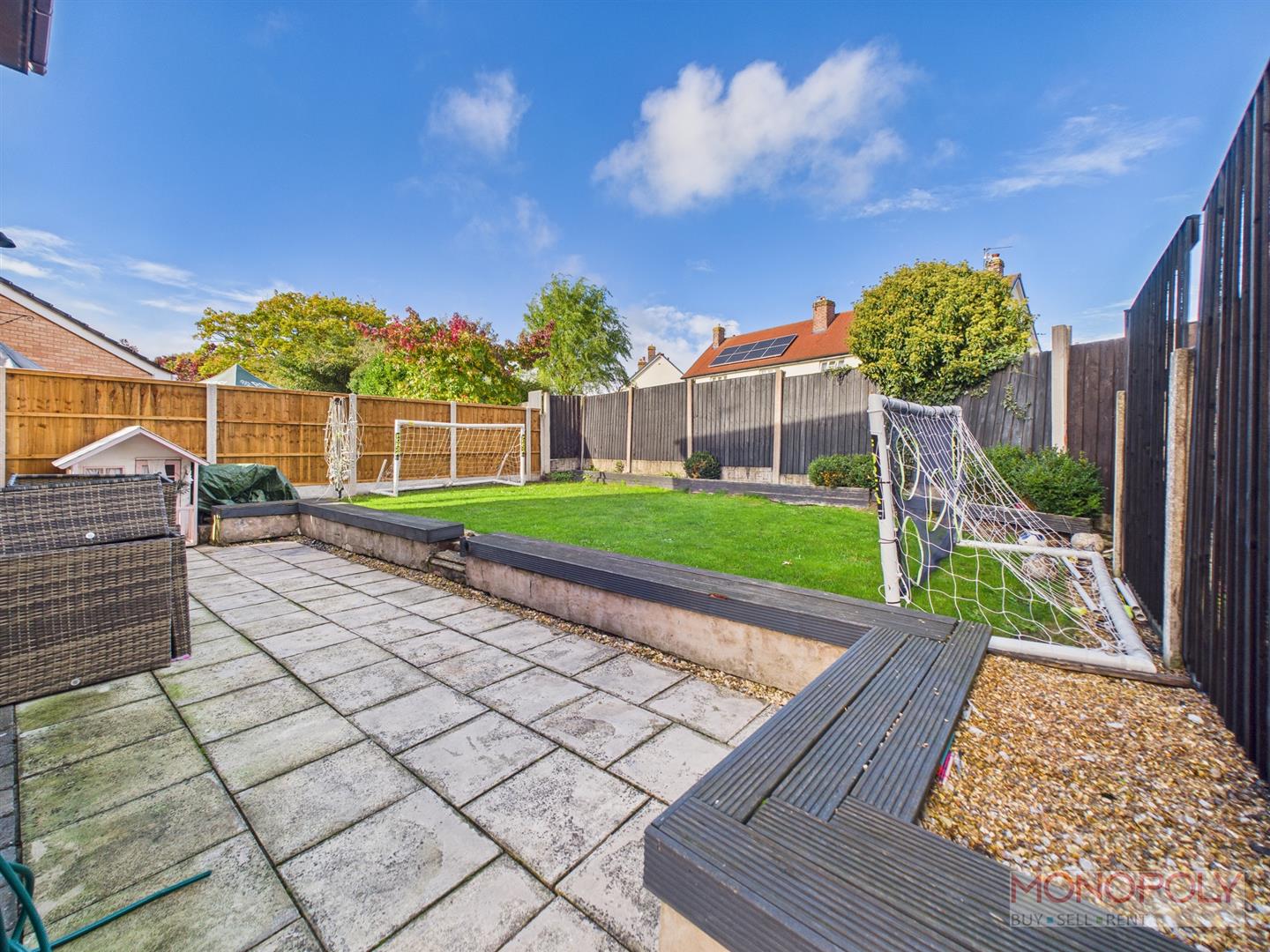 Externally, the property is situated at the end of a peaceful cul-de-sac, enjoying a good degree of privacy. To the front, there is a neatly maintained lawned garden and a concrete driveway providing off-road parking for two vehicles, along with a sheltered entrance porch. Gated access to the side leads to the rear garden, with one side featuring a practical lean-to providing useful covered storage space. The rear garden is well presented and ideal for families, featuring a paved patio area perfect for outdoor dining, raised sleeper borders, and a central lawned section. Enclosed by fencing to all boundaries, the garden offers both privacy and security, creating a pleasant and safe outdoor space for relaxation or play.