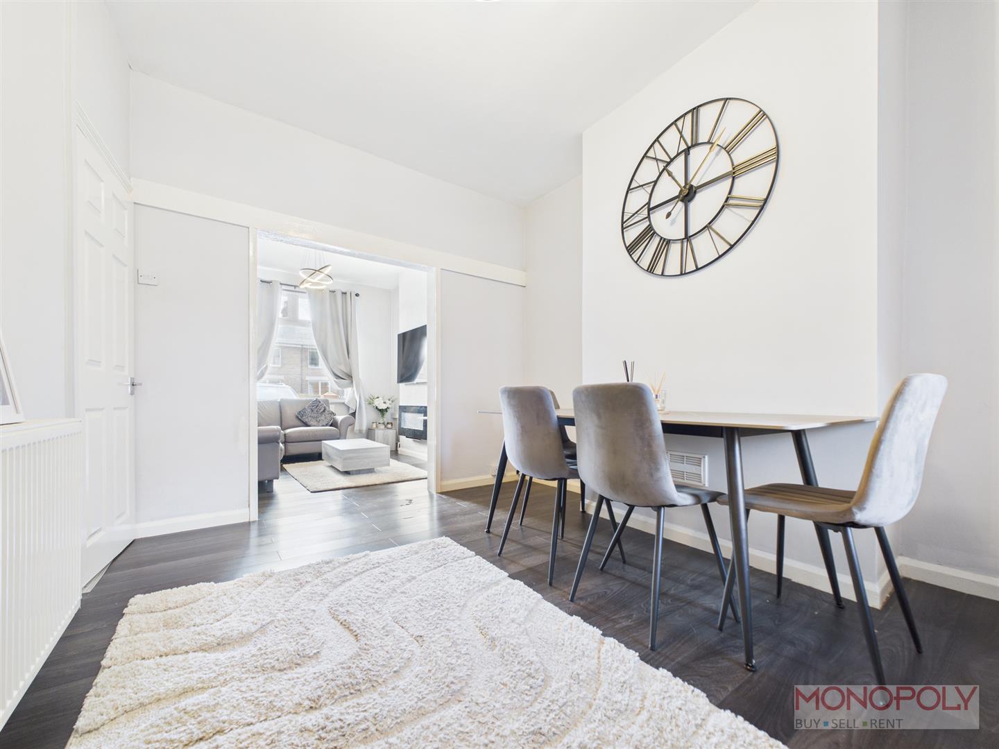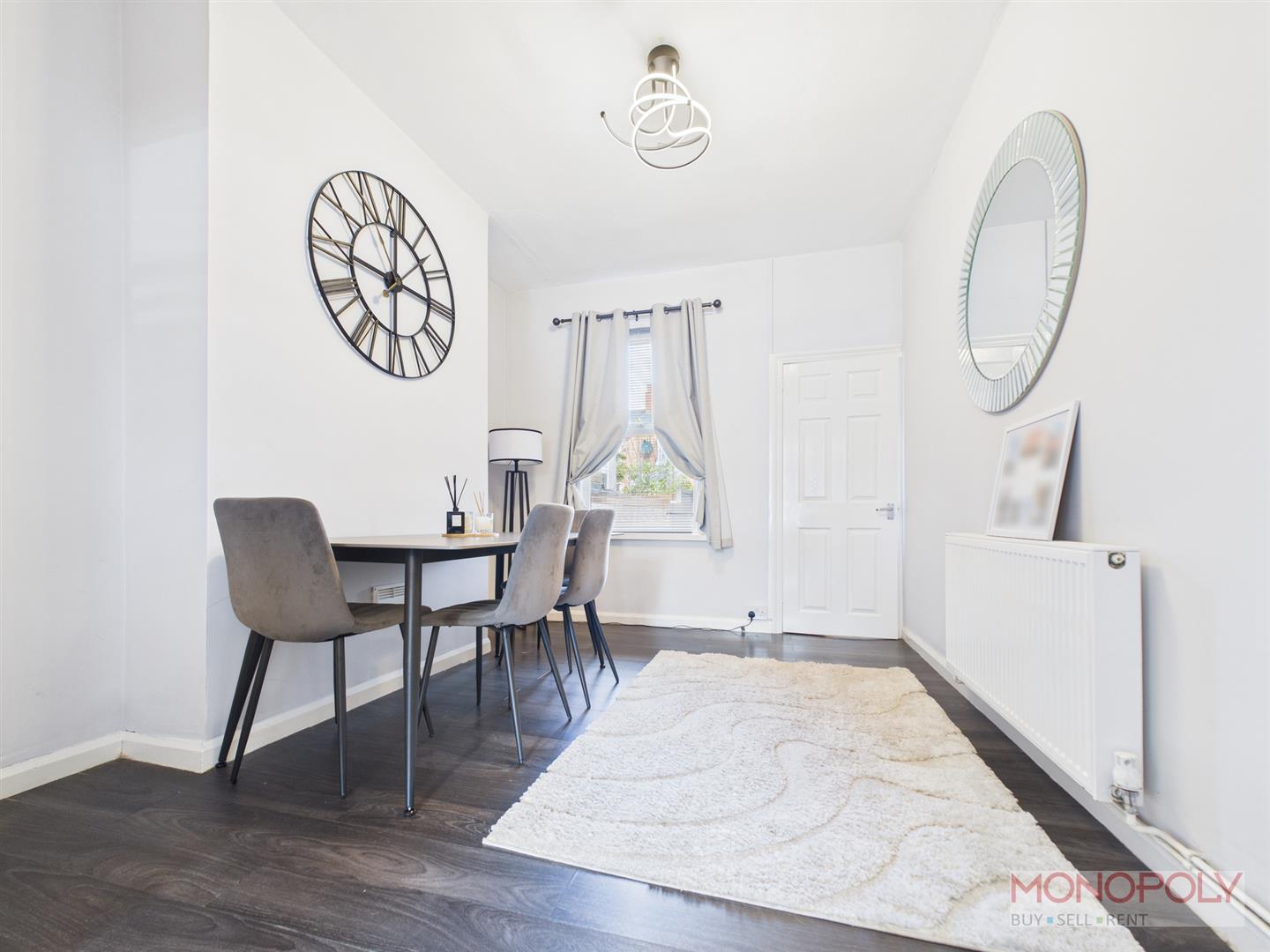 UPVC double glazed window to the rear elevation with blinds. Wooden laminate flooring, ceiling light point, radiator and door into kitchen.