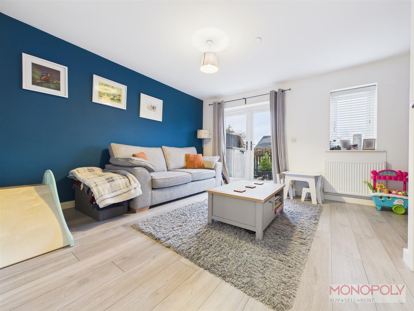 UPVC double glazed window to the rear elevation and uPVC double glazed French doors to rear. Under-stairs storage cupboard, wooden laminate flooring, ceiling light point and two panelled radiators.