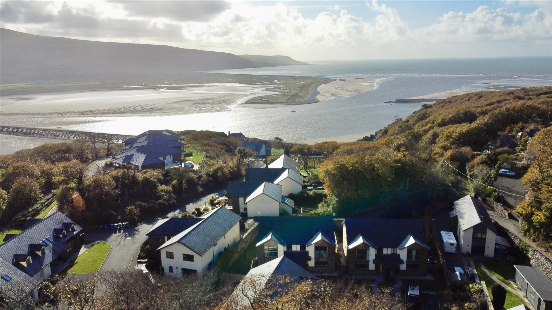 It is located in a tranquil setting surrounded by woodland with estuary and sea views and yet only a 10 minute stroll from a sandy beach and the centre of the charming coastal town of Barmouth. The property is perfectly positioned between the rugged Rhinog mountain range and the stunning Mawddach Estuary.