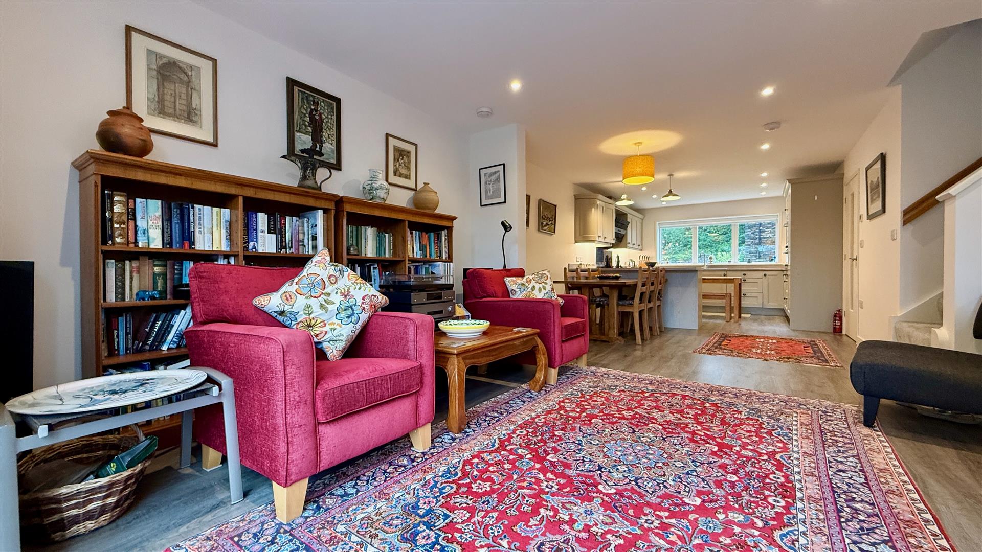 The hallway opens into a large open plan living space with floor to ceiling glazing to the rear over looking and opening to the garden.