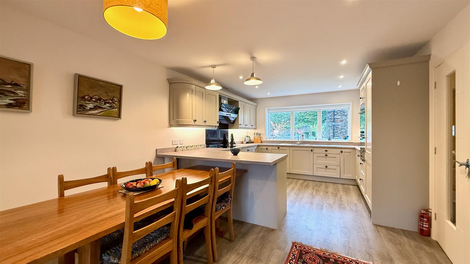 The dining area benefits from recessed LED spotlights, space for a large dining table and chairs.