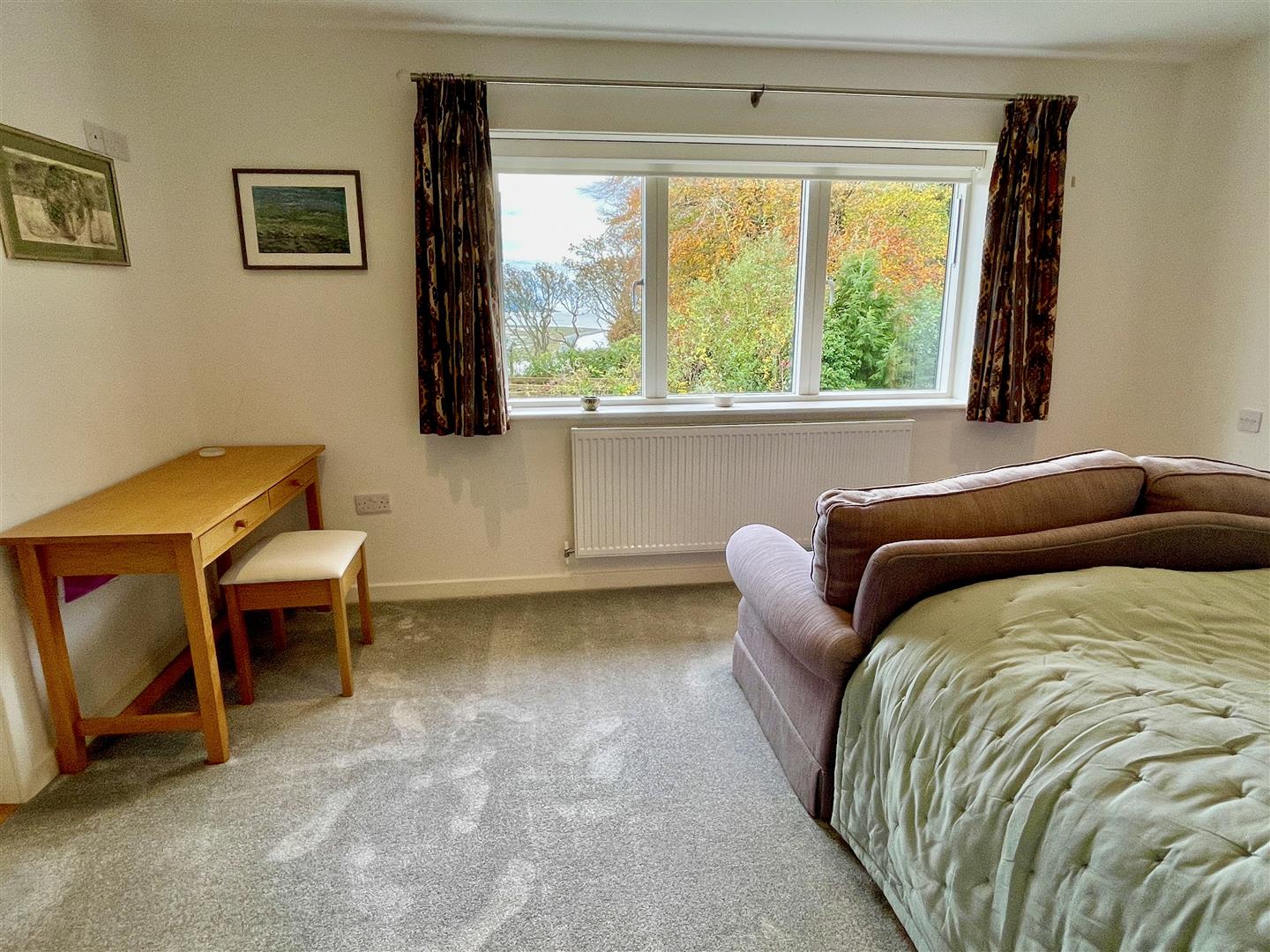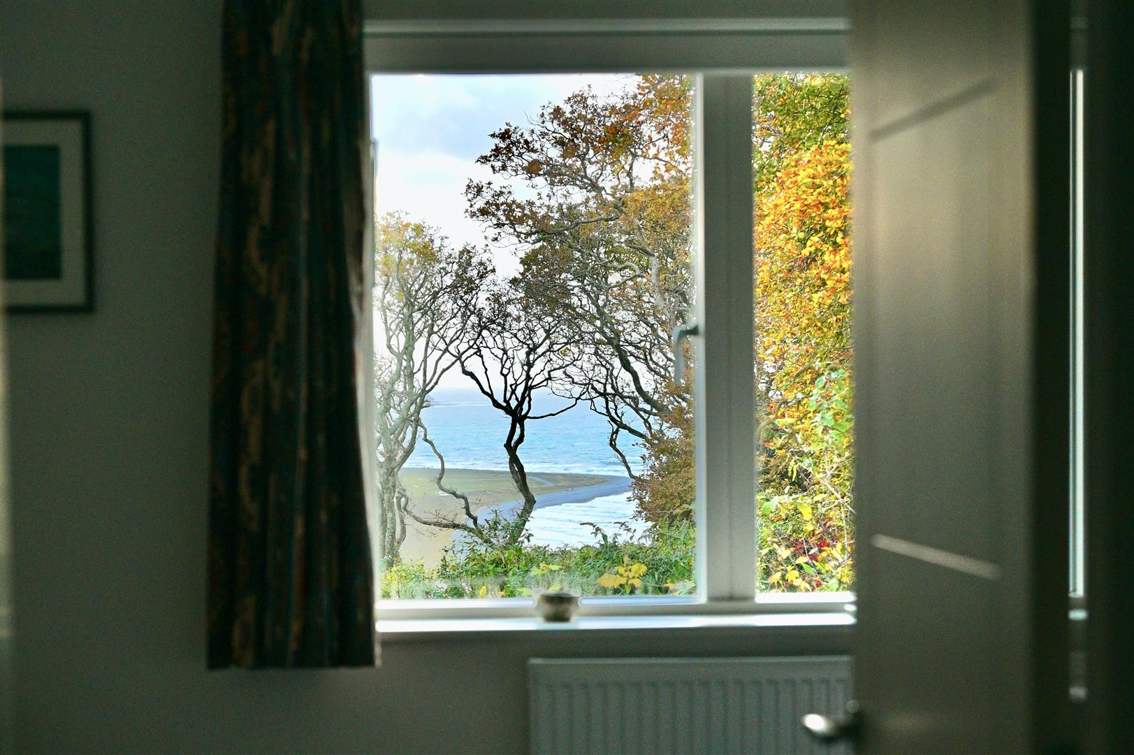 Large double bedroom with a lovely outlook over the walled back garden and through to the sea, remote control electric blind and door to en-suite: