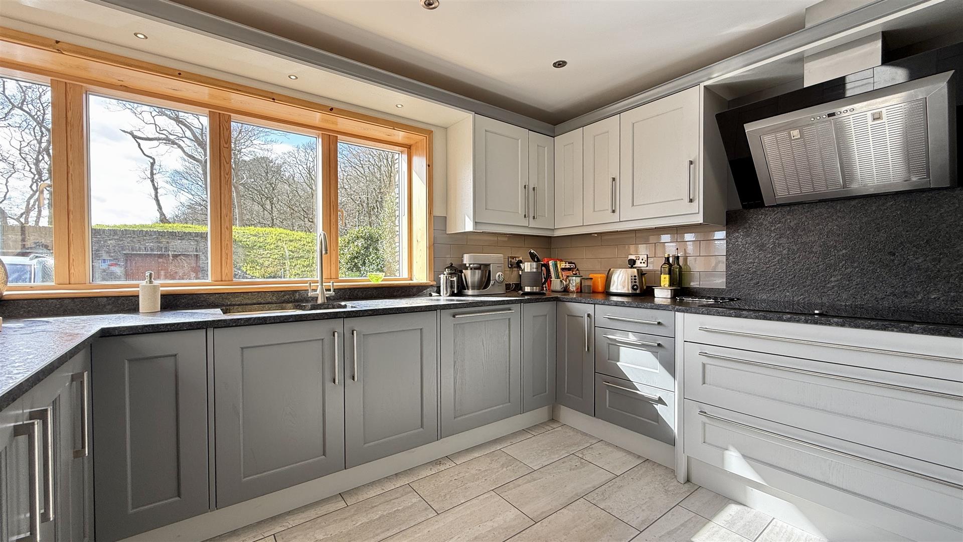 To the front is driveway parking for 2 cars bordered by a bed of olive and bay trees leading to the front door and an Indian sandstone patio seating area. The low maintenance rear garden is tastefully landscaped with Indian sandstone patios, stone chipped areas and flower beds with a glass balcony ensuring uninterrupted panoramic views.